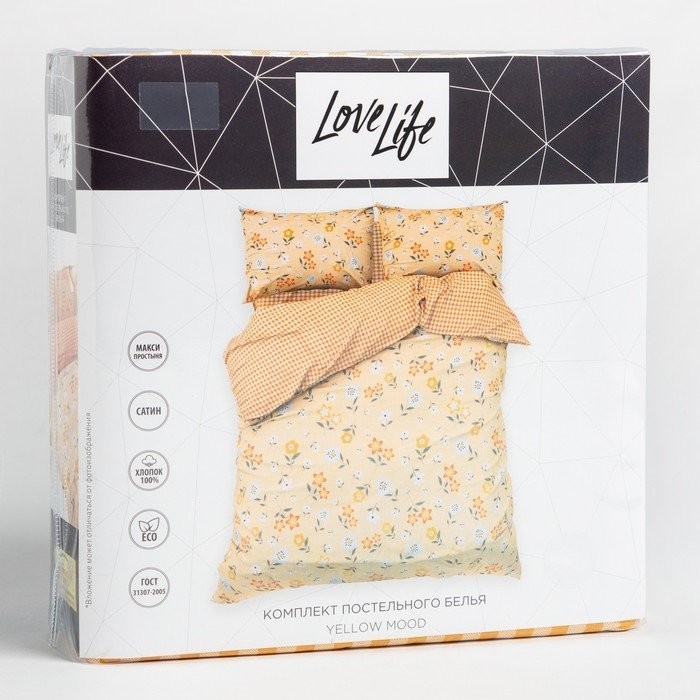 Постельное бельё LoveLife 2сп Yellow mood 175×215 см, 200×225 см, 50х70см-2шт, 100%хлопок, сатин, 125г/м