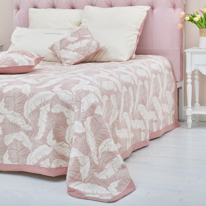 Покрывало хлопковое Этель «Перья» 180×240 см, цвет бежевый, 100% хлопок, 300гр/м2