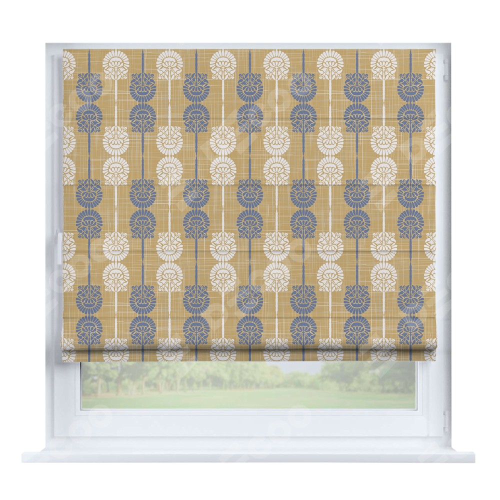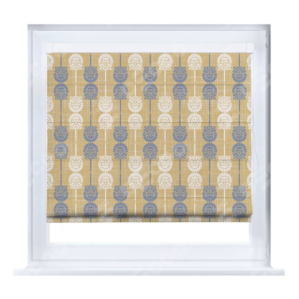 Римская штора производителя «Cortin», устанавливается на створку окна, пошита из ткани блэкаут с нанесением сублимационной печати «Венок из ромашки». Штора шьётся по индивидуальным размерам, для данного типа римской шторы возможная ширина от 35 до 150 см., высота до 250 см.