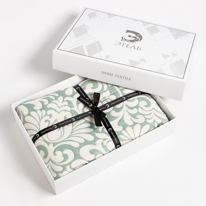 Покрывало хлопковое Этель «Узоры» 220×240 см, цвет зелёный, 100% хлопок, 300гр/м2