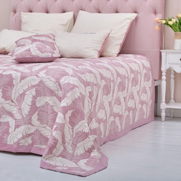 Покрывало хлопковое Этель «Перья» 180×240 см, цвет фиолетовый, 100% хлопок, 300гр/м2