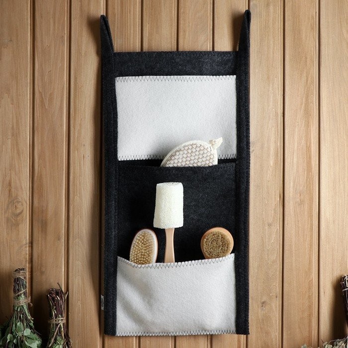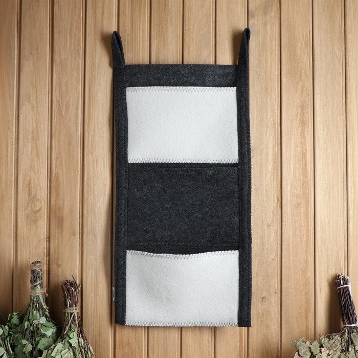 Коврик банный настенный, войлок, 3 кармана 79×36 см черно-белый