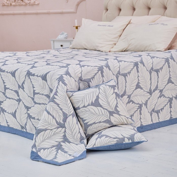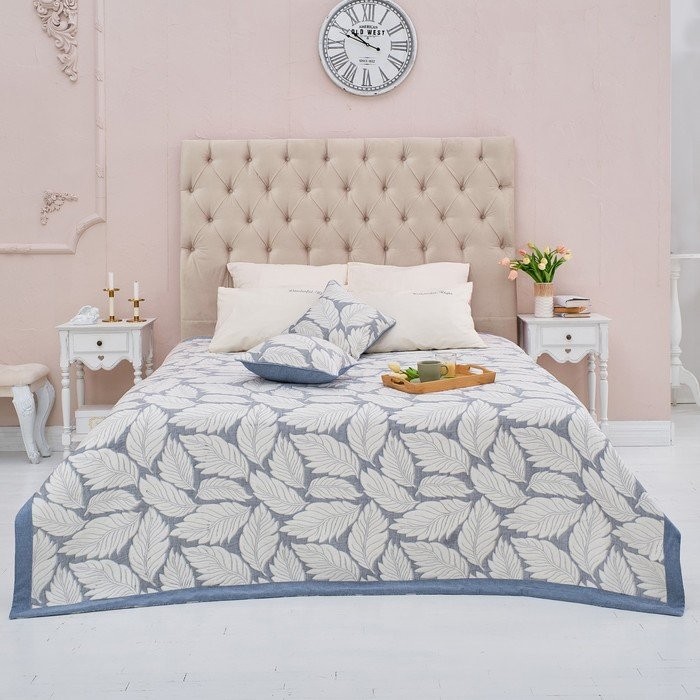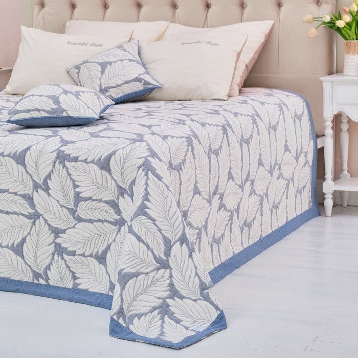 Покрывало хлопковое Этель «Листопад» 200×240 см, цвет синий, 100% хлопок, 300гр/м2