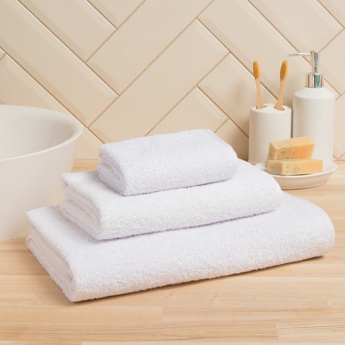 Полотенце махровое Экономь и Я 50*90 см, цв. белый, 100% хлопок, 350 гр/м2