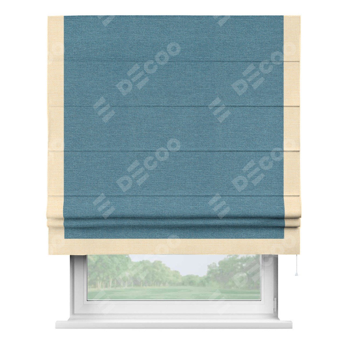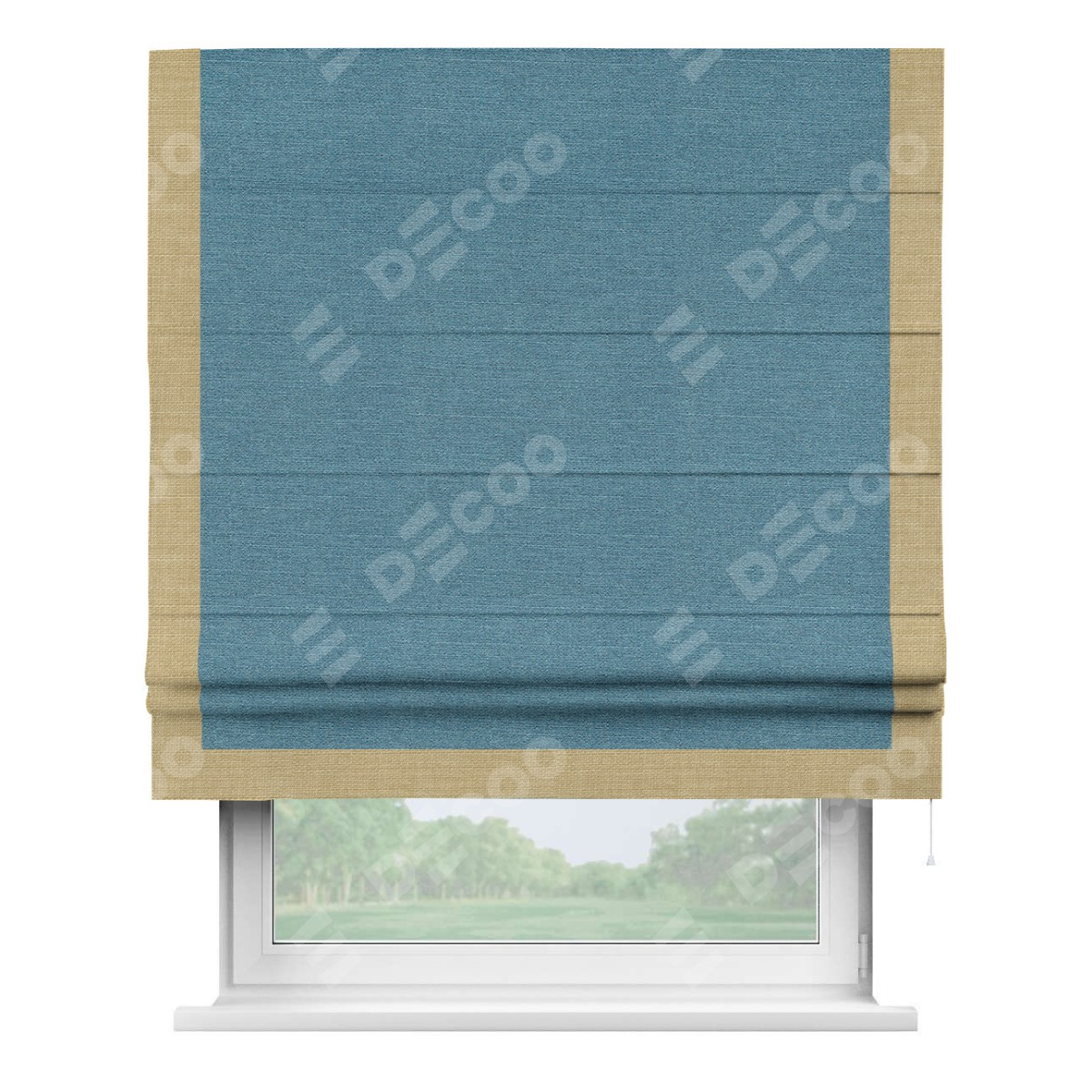 Римская штора «Кортин» с кантом Виктория, для проема, ткань лён голубой