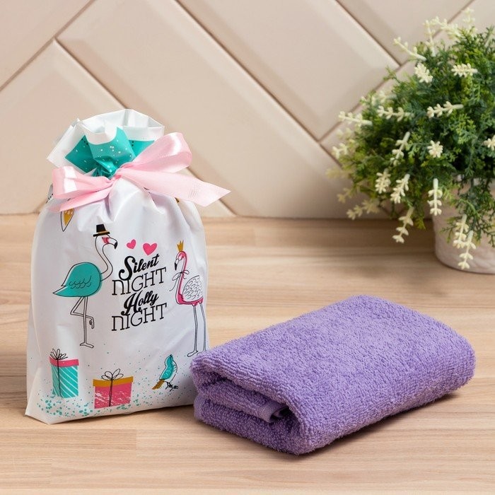 Полотенце в мешочке Экономь и Я «Фламинго» 30*60 см, 100% хлопок, 320 гр/м2