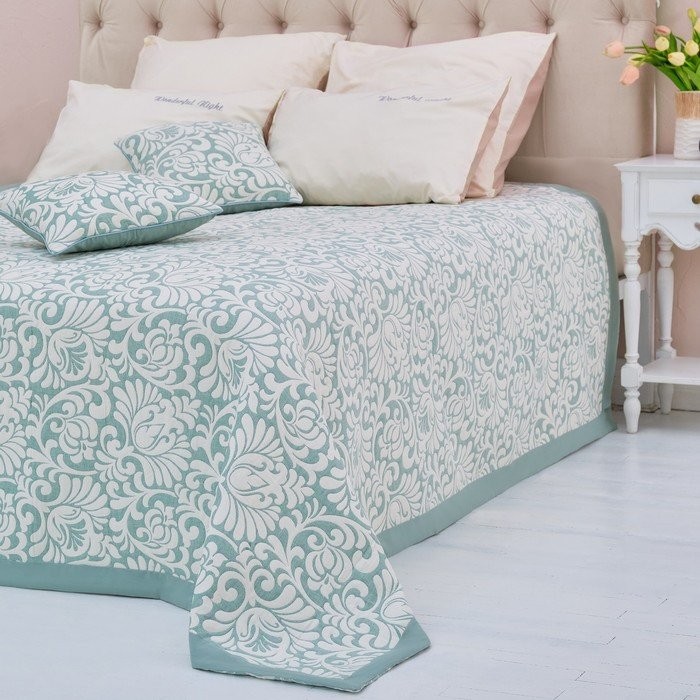Покрывало хлопковое Этель «Узоры» 200×240 см, цвет зелёный, 100% хлопок, 300гр/м2