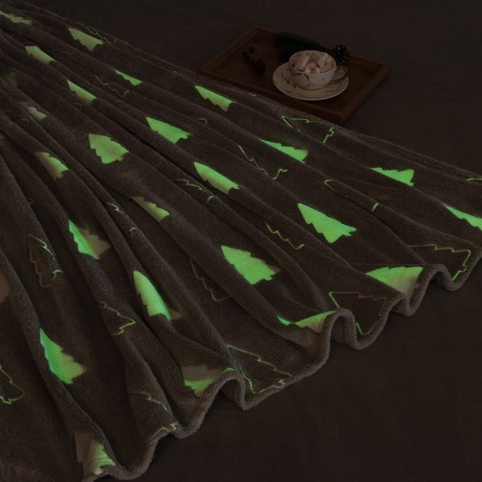 Плед светящийся в темноте Этель «Елочки» 150*200 см,100% п/э, корал-флис 220 гр/м2