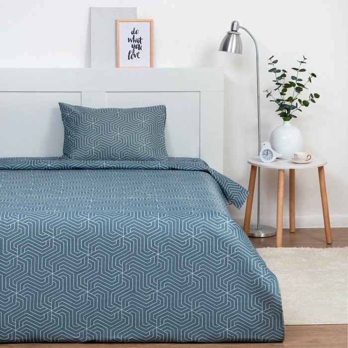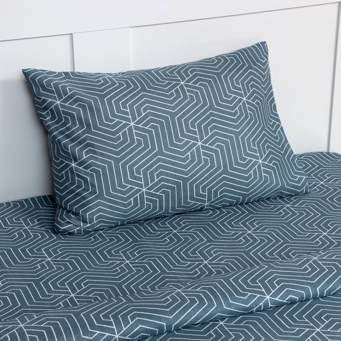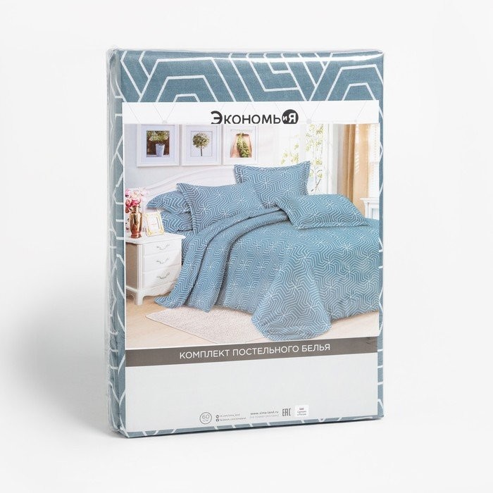 Постельное бельё 1,5сп Экономь и Я «Синяя геометрия» 143х215см, 145х214см, 50х70см-1 шт 60г/м2 микрофибра