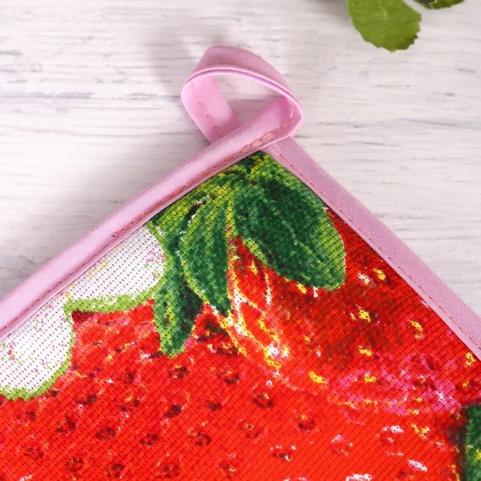 Прихватка 18×18 см, Клубника, рогожка, 100% хлопок