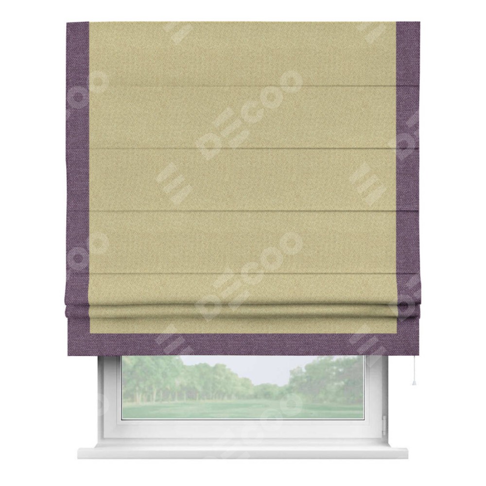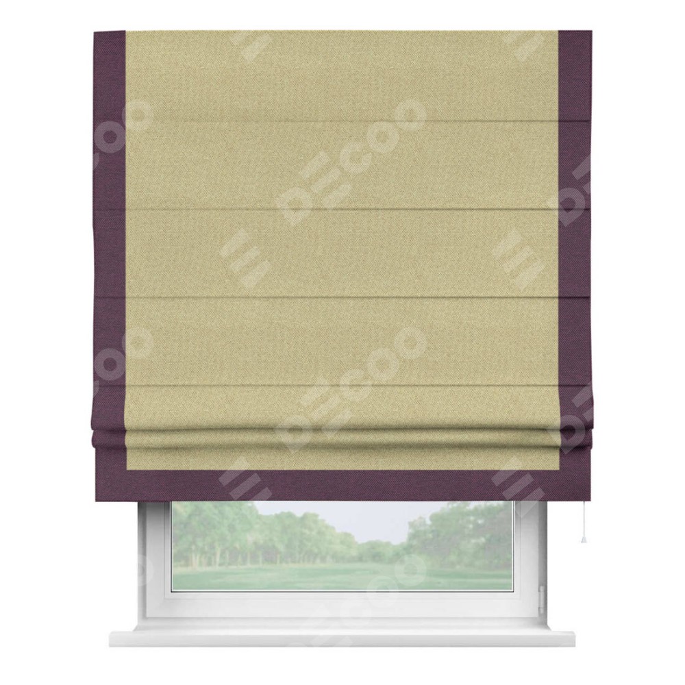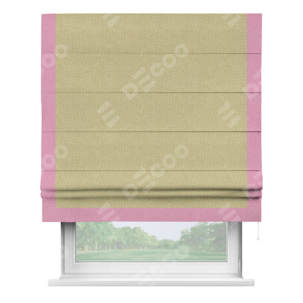 Римская штора «Кортин» с кантом Виктория, для проема, ткань лён димаут, песочный