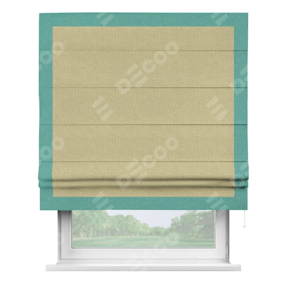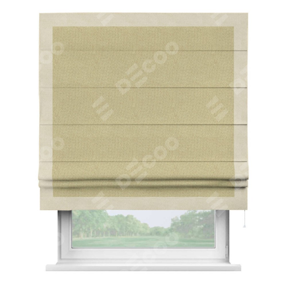 Римская штора «Кортин» с кантом Чесс, для проема, ткань лён димаут, песочный