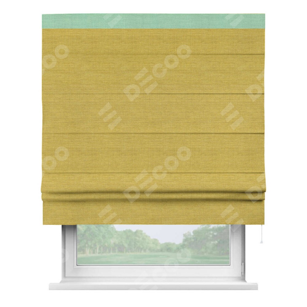 Римская штора «Кортин» с кантом Кинг, для проема, ткань лён светло-салатовый