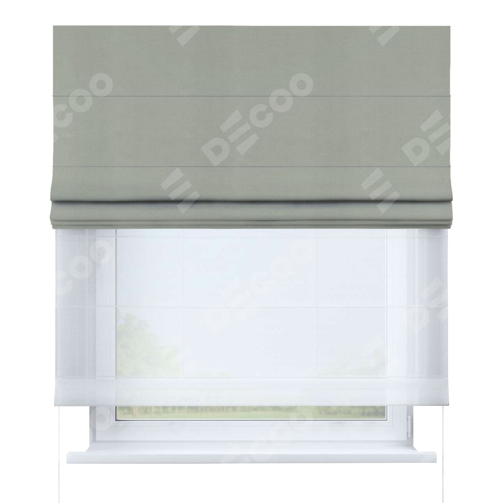 Римская штора день-ночь производителя «Cortin», используется для проёма, пошита из двух полотен, с лицевой стороны вельвет светло-серый артикул 30981, вторая ткань тюль (по стандарту комплектуется тюль белого цвета артикул V-01). Имеет универсальный механизм и подходит для монтажа: на потолок, на стену и в нишу.