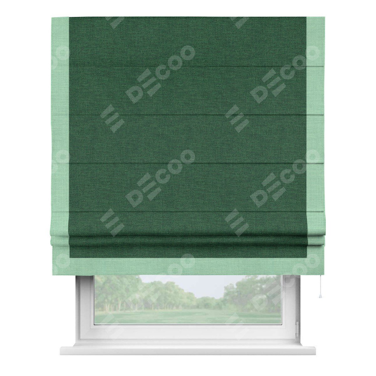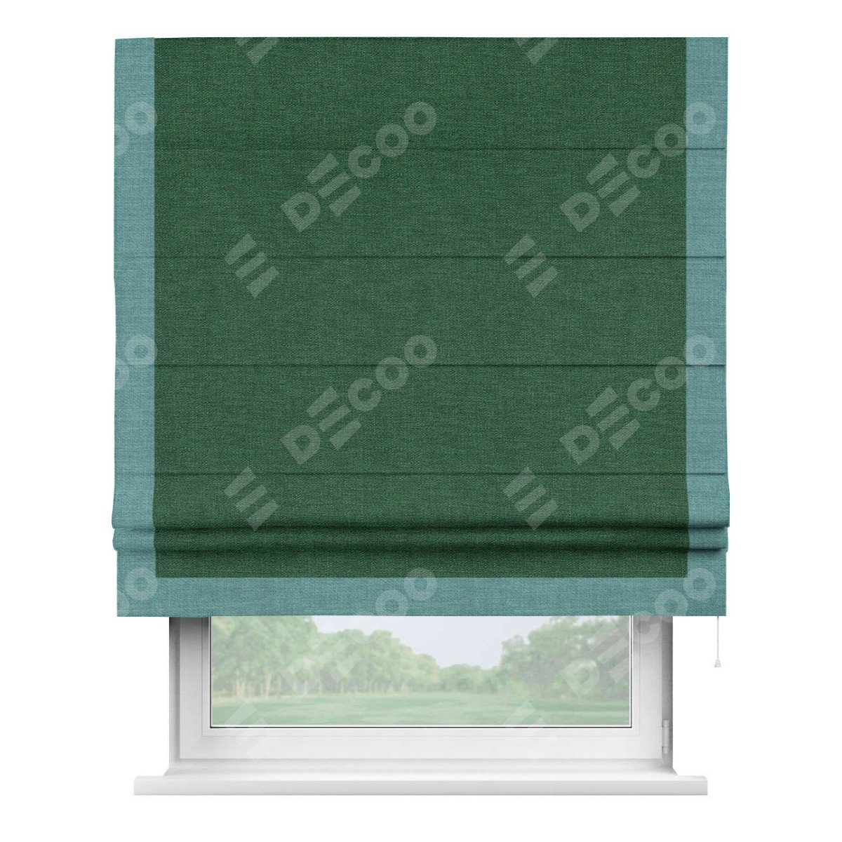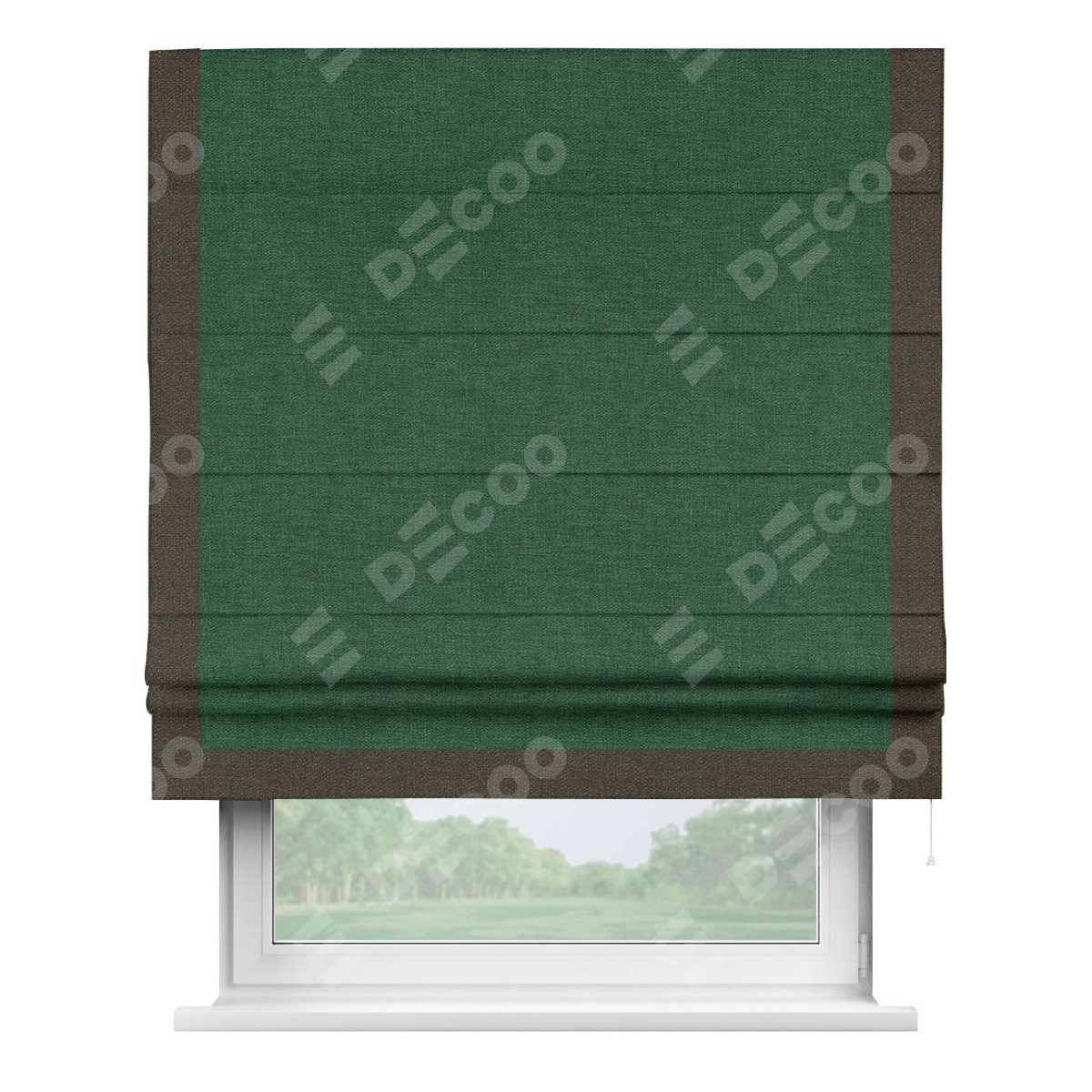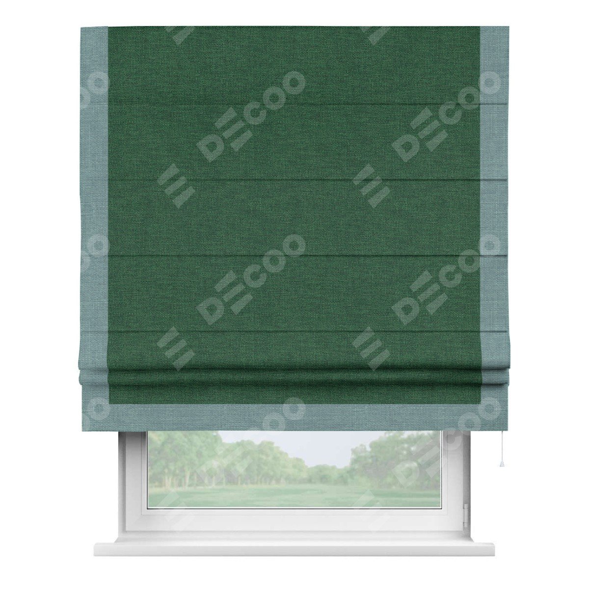 Римская штора «Кортин» с кантом Виктория, для проема, ткань лён серо-зеленый