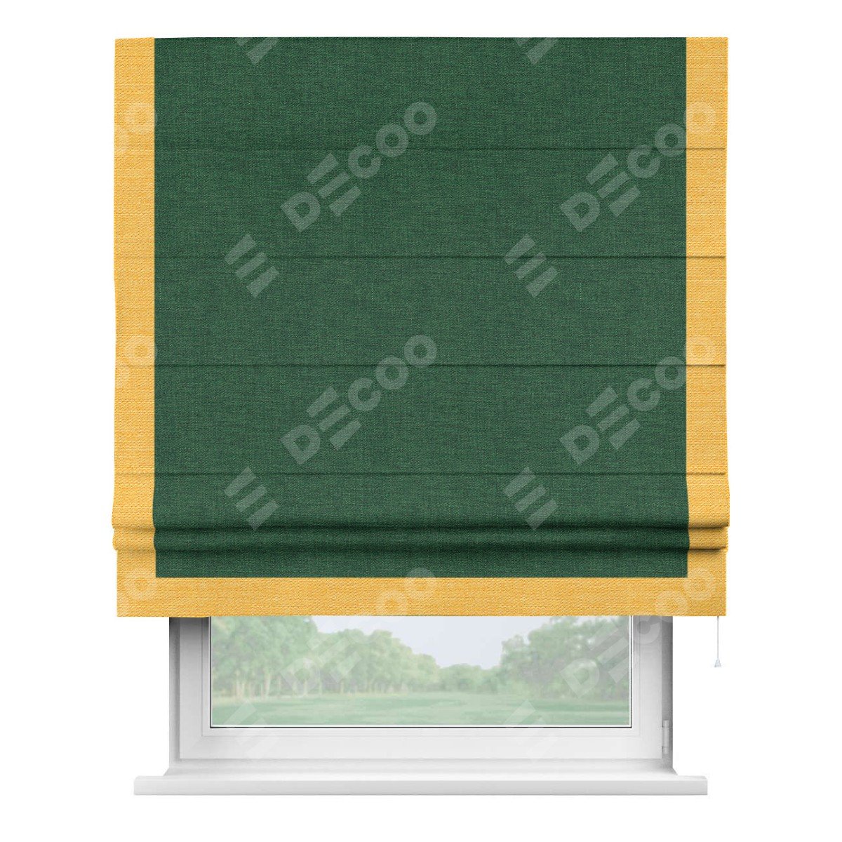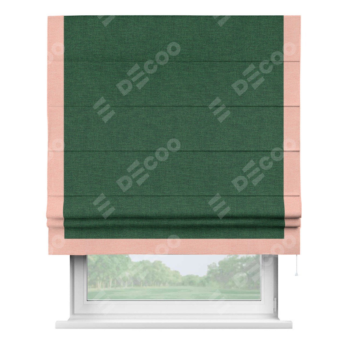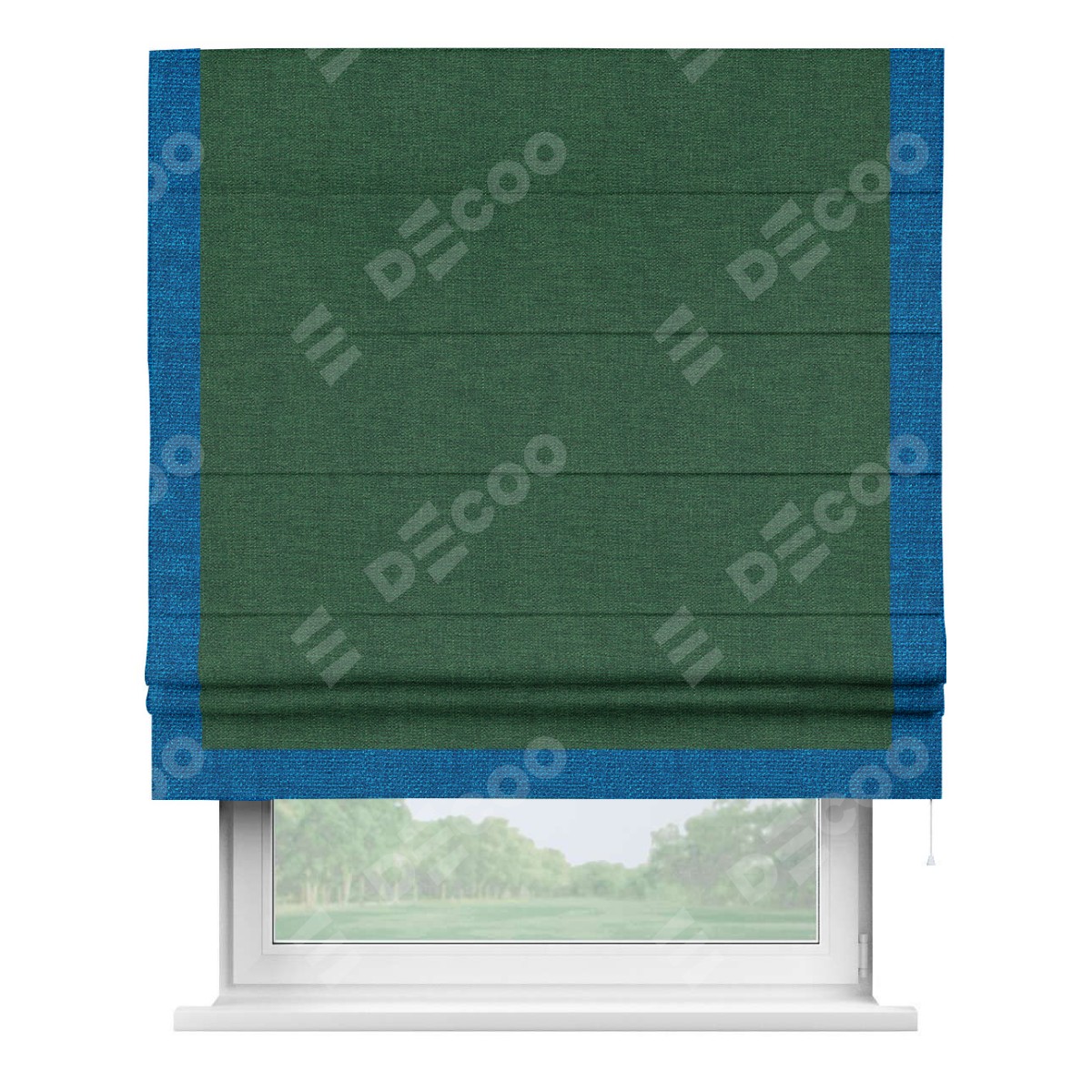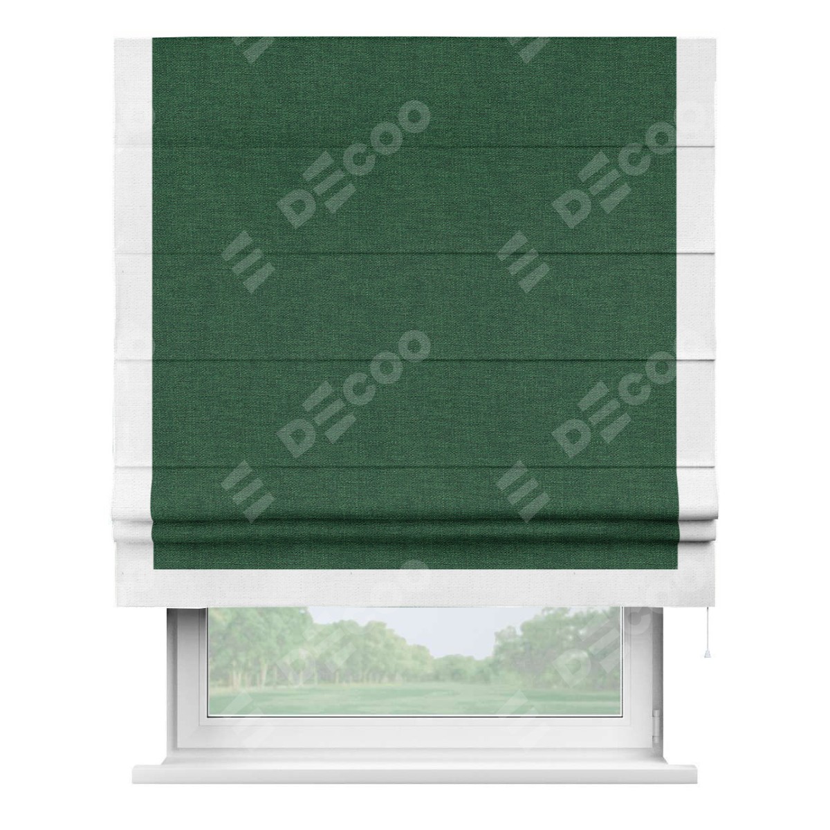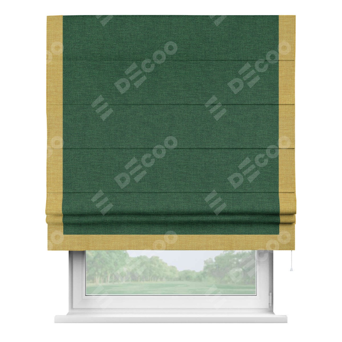 Римская штора «Кортин» с кантом Виктория, для проема, ткань лён серо-зеленый
