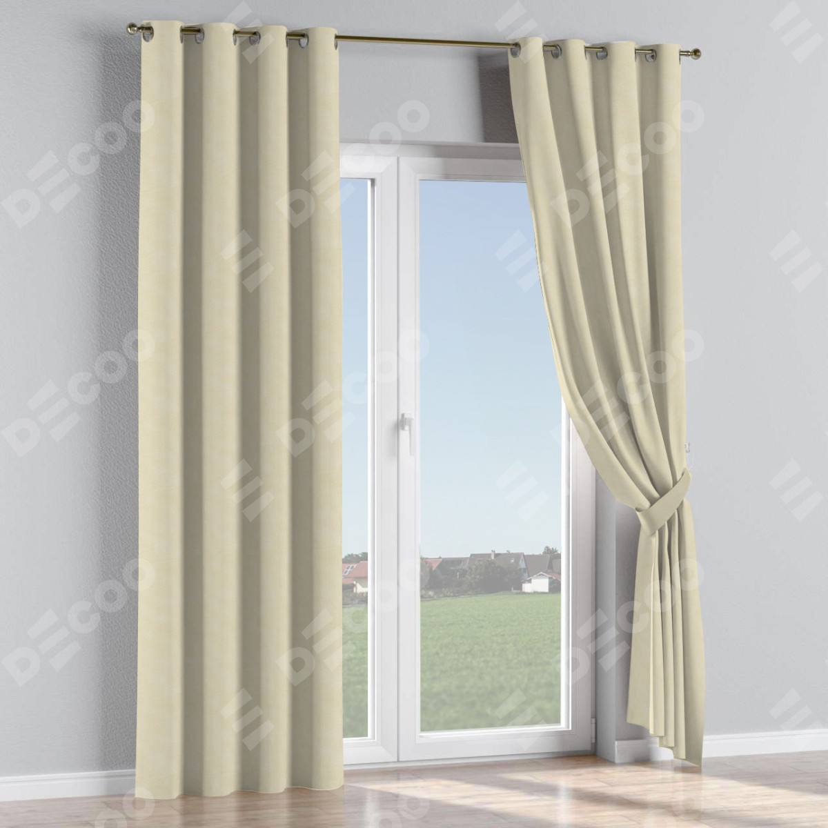 Комплект прямых штор, от производителя «Cortin», пошиты из ткани лён димаут бежевый, артикул ткани 83023. Данная модель пошита на люверсах, комплектуется на выбор круглым карнизом и подходит для монтажа на стену или потолок. Прямые шторы на люверсах шьются по стандарту с коэффициентом 1/2 (на 100 см. ширины проёма 200 см. ширины ткани), отличительным преимуществом данной модели является простой способ монтажа. Достаточно повесить ее на трубу и штора готова!