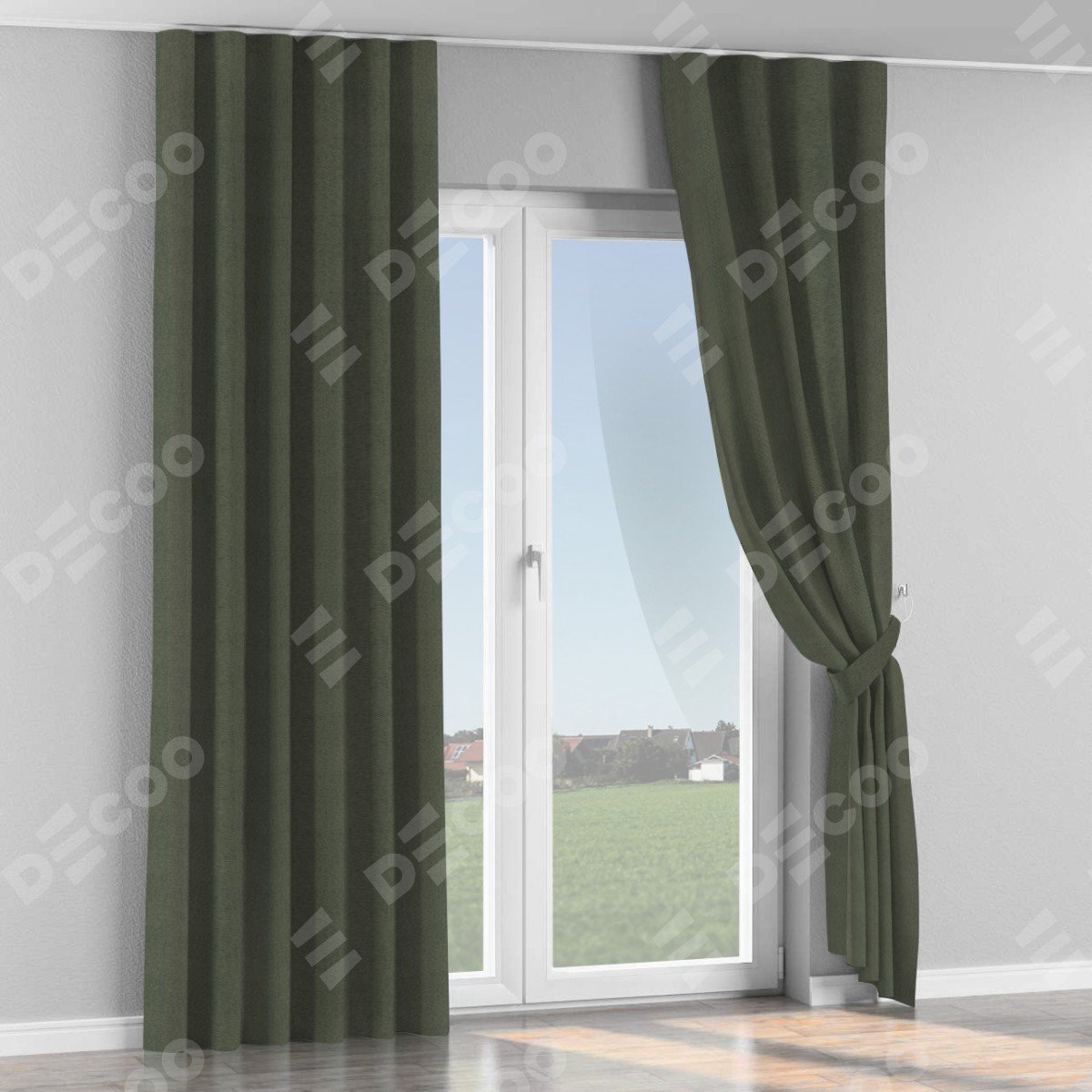 Комплект прямых штор, от производителя «Cortin», пошиты из ткани лён димаут графит, артикул ткани 27. С изнаночной стороны в верхней части штор пристрачивается шторная лента с декоративными складками «Волна». Для создания элегантных складок прямые шторы шьются по стандарту с коэффициентом 1:2 (на 100 см. ширины проёма 200 см. ширины ткани).