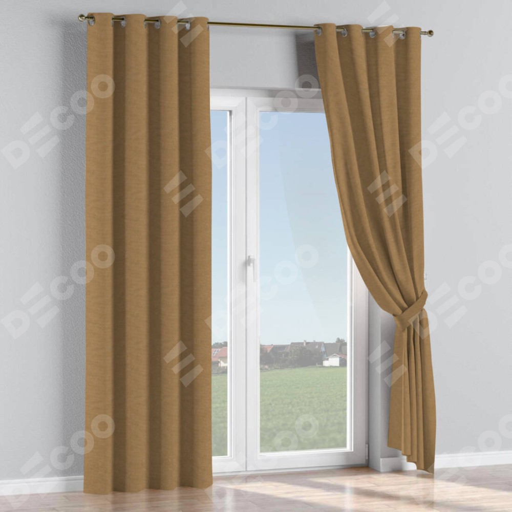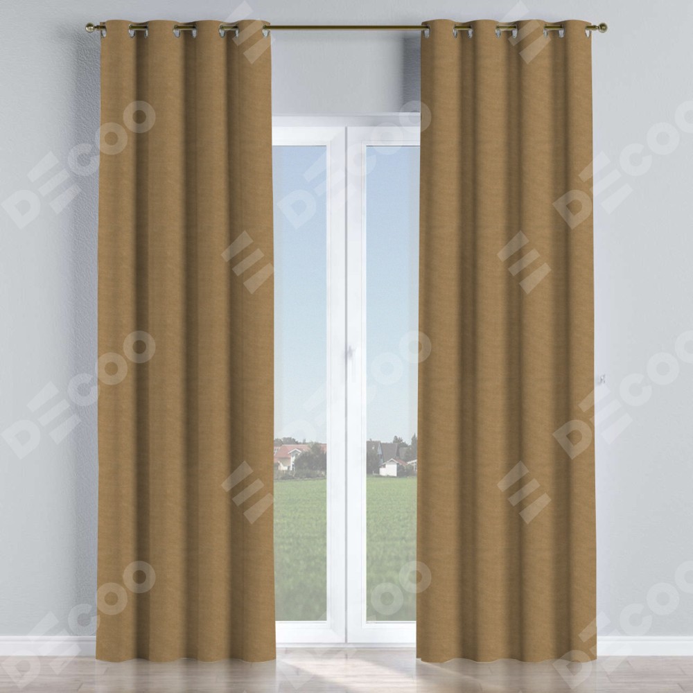 Комплект прямых штор, от производителя «Cortin», пошиты из ткани лён димаут коричневый, артикул ткани 83026. Данная модель пошита на люверсах, комплектуется на выбор круглым карнизом и подходит для монтажа на стену или потолок. Прямые шторы на люверсах шьются по стандарту с коэффициентом 1/2 (на 100 см. ширины проёма 200 см. ширины ткани), отличительным преимуществом данной модели является простой способ монтажа. Достаточно повесить ее на трубу и штора готова!