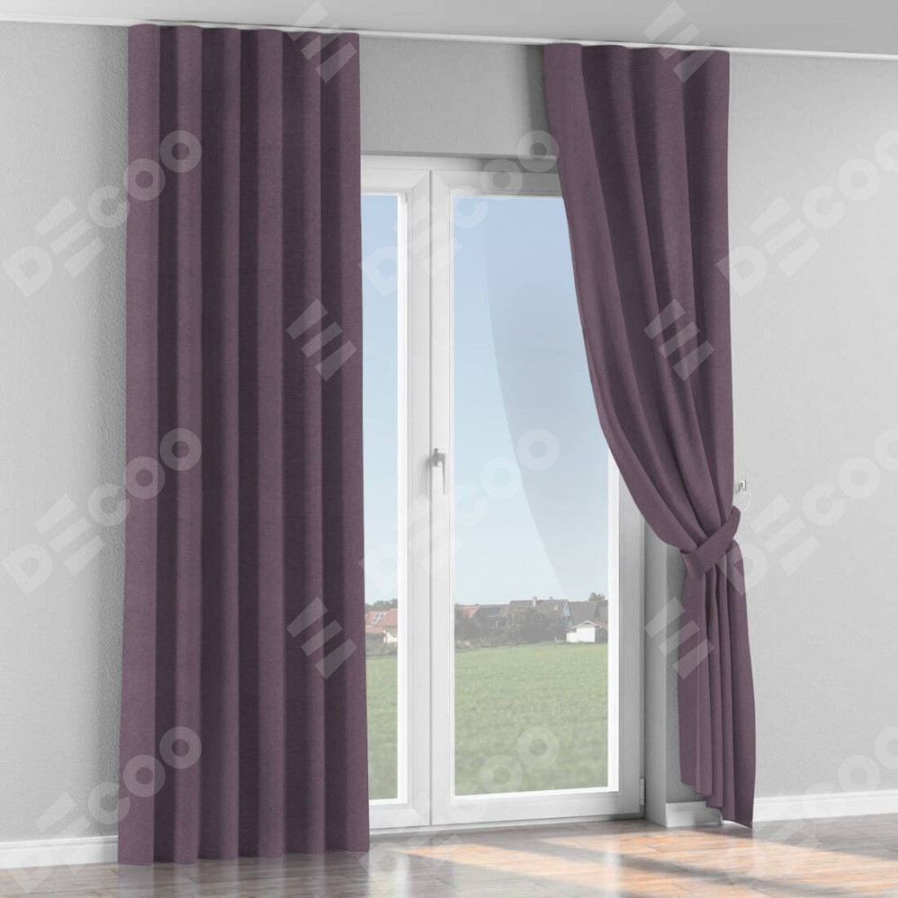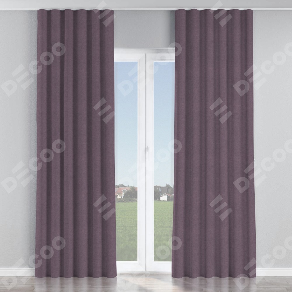 Комплект прямых штор, от производителя «Cortin», пошиты из ткани лён димаут светло-фиолетовый, артикул ткани 83034. С изнаночной стороны в верхней части штор пристрачивается шторная лента с декоративными складками «Волна». Для создания элегантных складок прямые шторы шьются по стандарту с коэффициентом 1:2 (на 100 см. ширины проёма 200 см. ширины ткани).