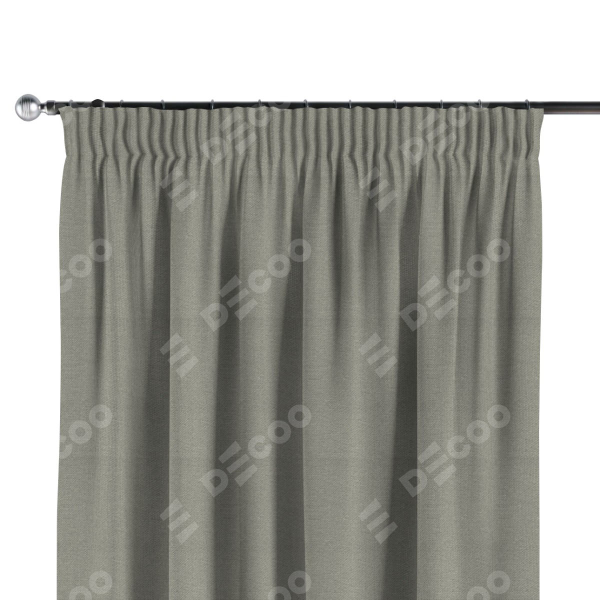 Комплект прямых штор, от производителя «Cortin», пошиты из ткани лён димаут серый, артикул ткани 00001. С изнаночной стороны в верхней части штор пристрачивается шторная лента с декоративными складками «Карандаш». Для создания элегантных складок прямые шторы шьются по стандарту с коэффициентом 1:2 (на 100 см. ширины проёма 200 см. ширины ткани).