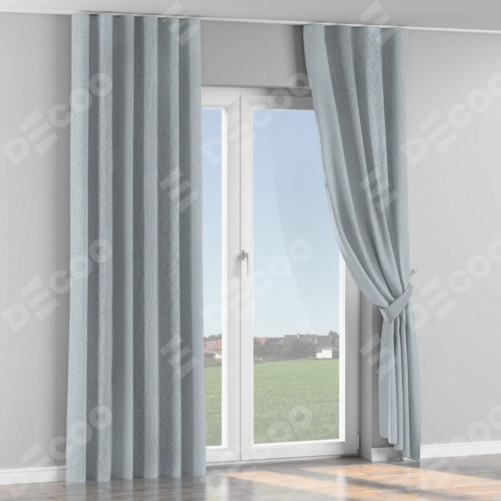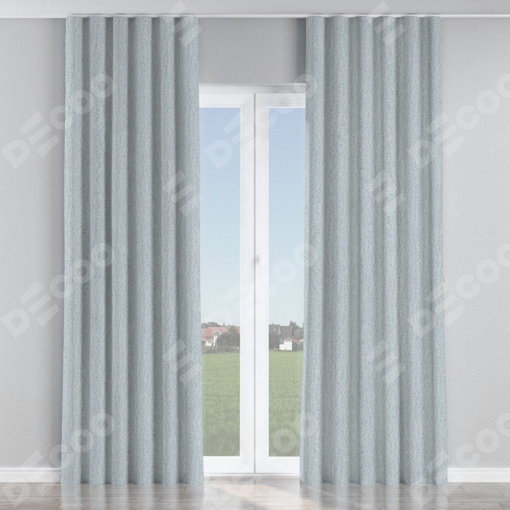 Комплект прямых штор, от производителя «Cortin», пошиты из ткани лён димаут серый, артикул ткани F3. С изнаночной стороны в верхней части штор пристрачивается шторная лента с декоративными складками «Волна». Для создания элегантных складок прямые шторы шьются по стандарту с коэффициентом 1:2 (на 100 см. ширины проёма 200 см. ширины ткани).