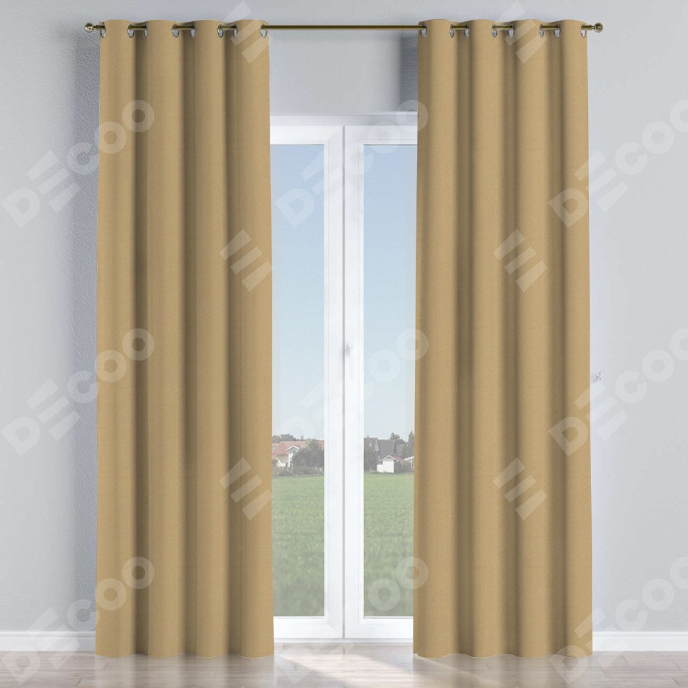 Комплект прямых штор, от производителя «Cortin», пошиты из ткани лён димаут тёмно-бежевый, артикул ткани 83037. Данная модель пошита на люверсах, комплектуется на выбор круглым карнизом и подходит для монтажа на стену или потолок. Прямые шторы на люверсах шьются по стандарту с коэффициентом 1/2 (на 100 см. ширины проёма 200 см. ширины ткани), отличительным преимуществом данной модели является простой способ монтажа. Достаточно повесить ее на трубу и штора готова!