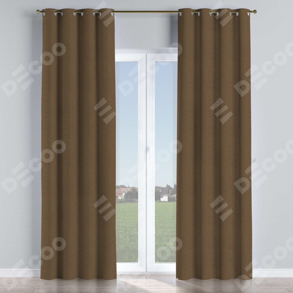 Комплект прямых штор, от производителя «Cortin», пошиты из ткани лён димаут тёмно-коричневый, артикул ткани 83030. Данная модель пошита на люверсах, комплектуется на выбор круглым карнизом и подходит для монтажа на стену или потолок. Прямые шторы на люверсах шьются по стандарту с коэффициентом 1/2 (на 100 см. ширины проёма 200 см. ширины ткани), отличительным преимуществом данной модели является простой способ монтажа. Достаточно повесить ее на трубу и штора готова!