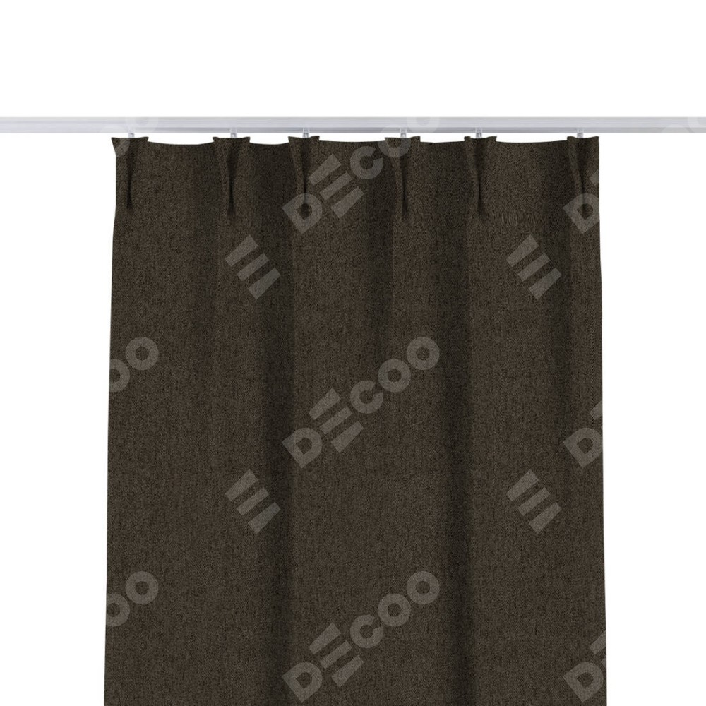 Комплект прямых штор, от производителя «Cortin», пошиты из ткани твид блэкаут тёмно-коричневый, артикул ткани 21584. С изнаночной стороны в верхней части штор пристрачивается шторная лента с декоративными складками «Кустик». Для создания элегантных складок прямые шторы шьются по стандарту с коэффициентом 1:2 (на 100 см. ширины проёма 200 см. ширины ткани).
