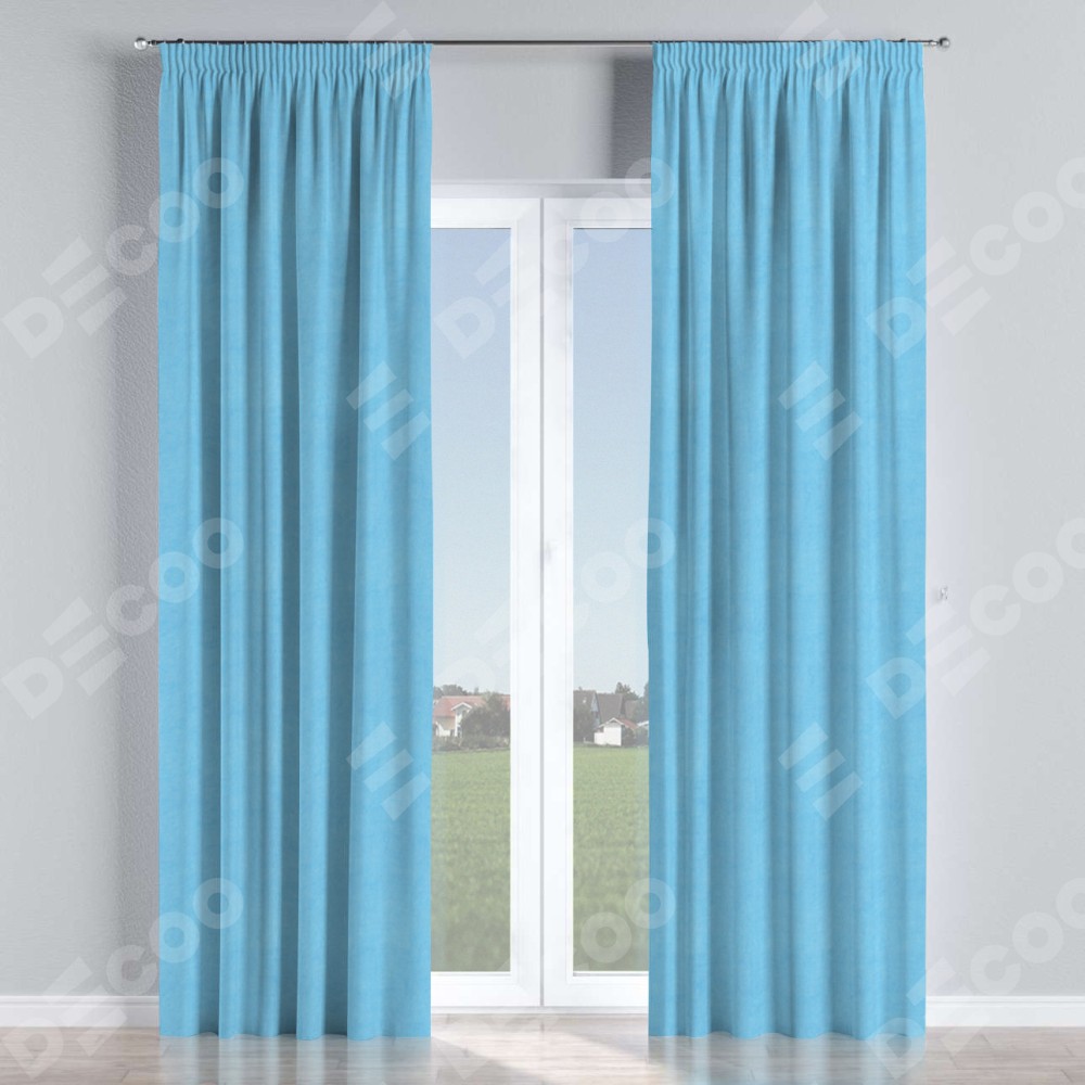 Комплект штор на тесьме «Карандаш», вельвет голубой