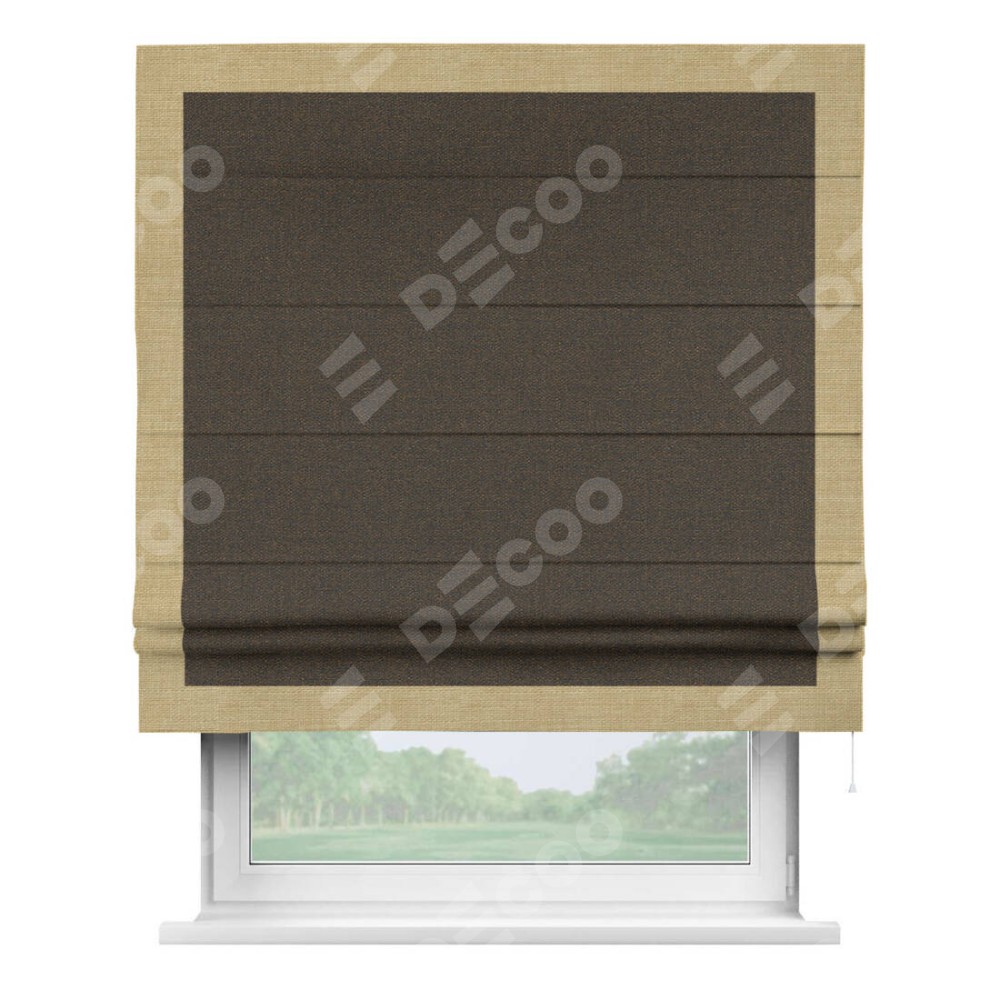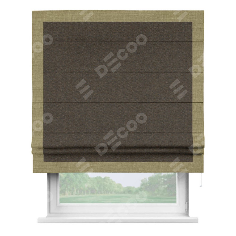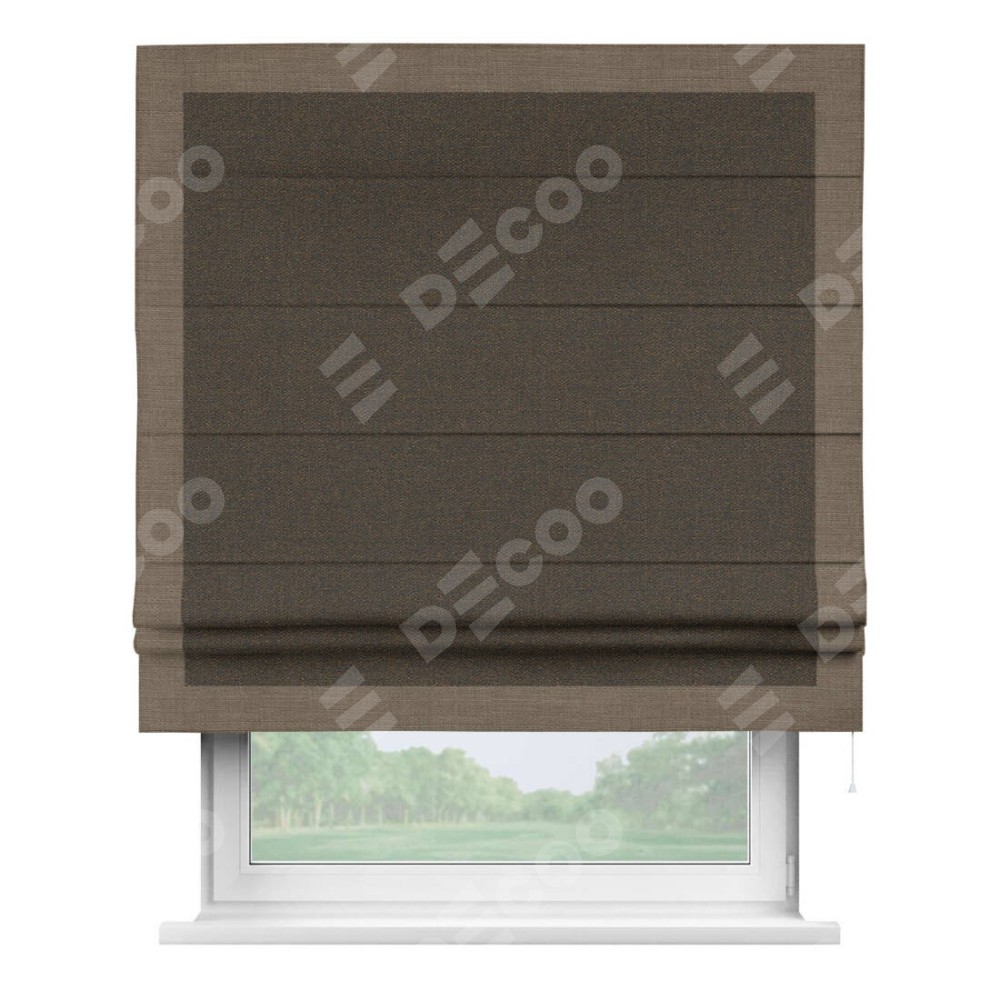 Римская штора «Кортин» с кантом Чесс, для проема, ткань лён темно-коричневый