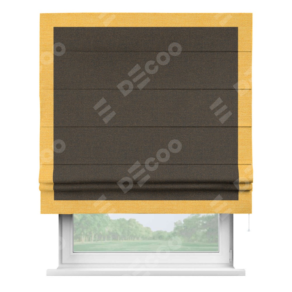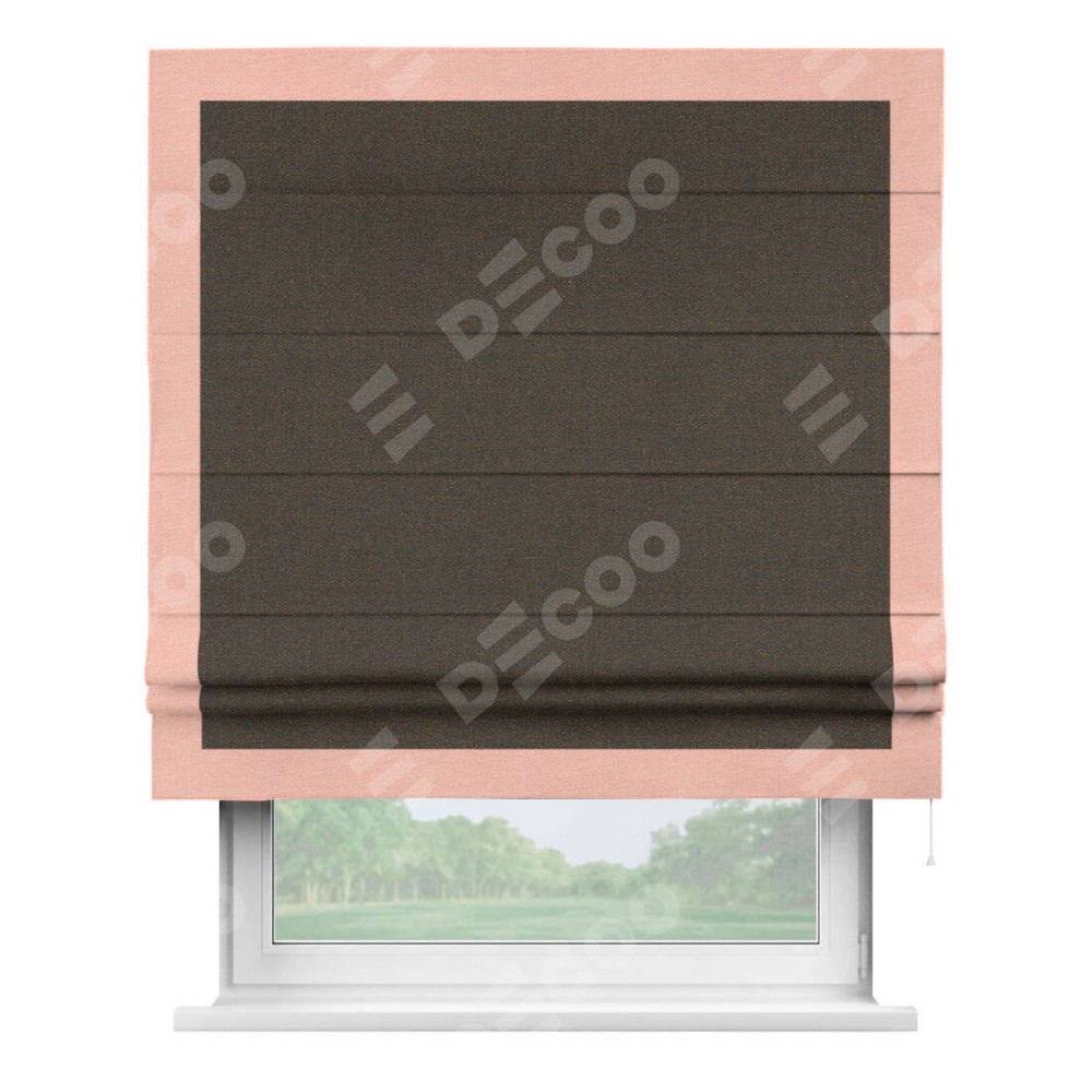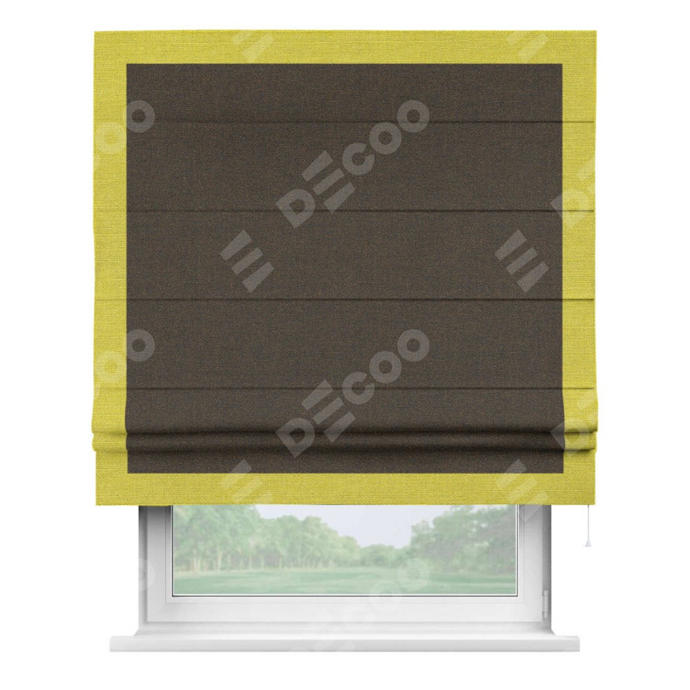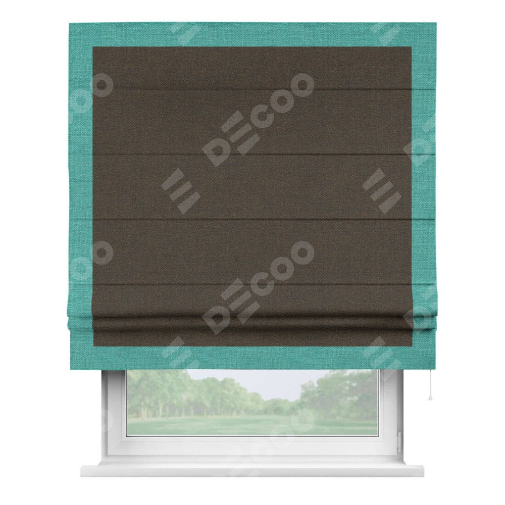 Римская штора «Кортин» с кантом Чесс, для проема, ткань лён темно-коричневый