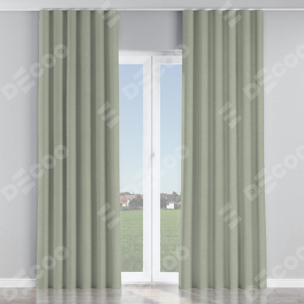 Комплект прямых штор, от производителя «Cortin», пошиты из ткани вельвет светло-серый, артикул ткани 30981. С изнаночной стороны в верхней части штор пристрачивается шторная лента с декоративными складками «Волна». Для создания элегантных складок прямые шторы шьются по стандарту с коэффициентом 1:2 (на 100 см. ширины проёма 200 см. ширины ткани).