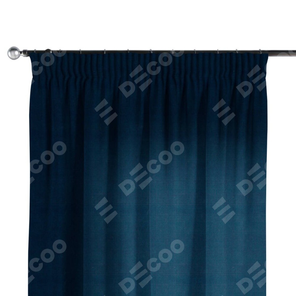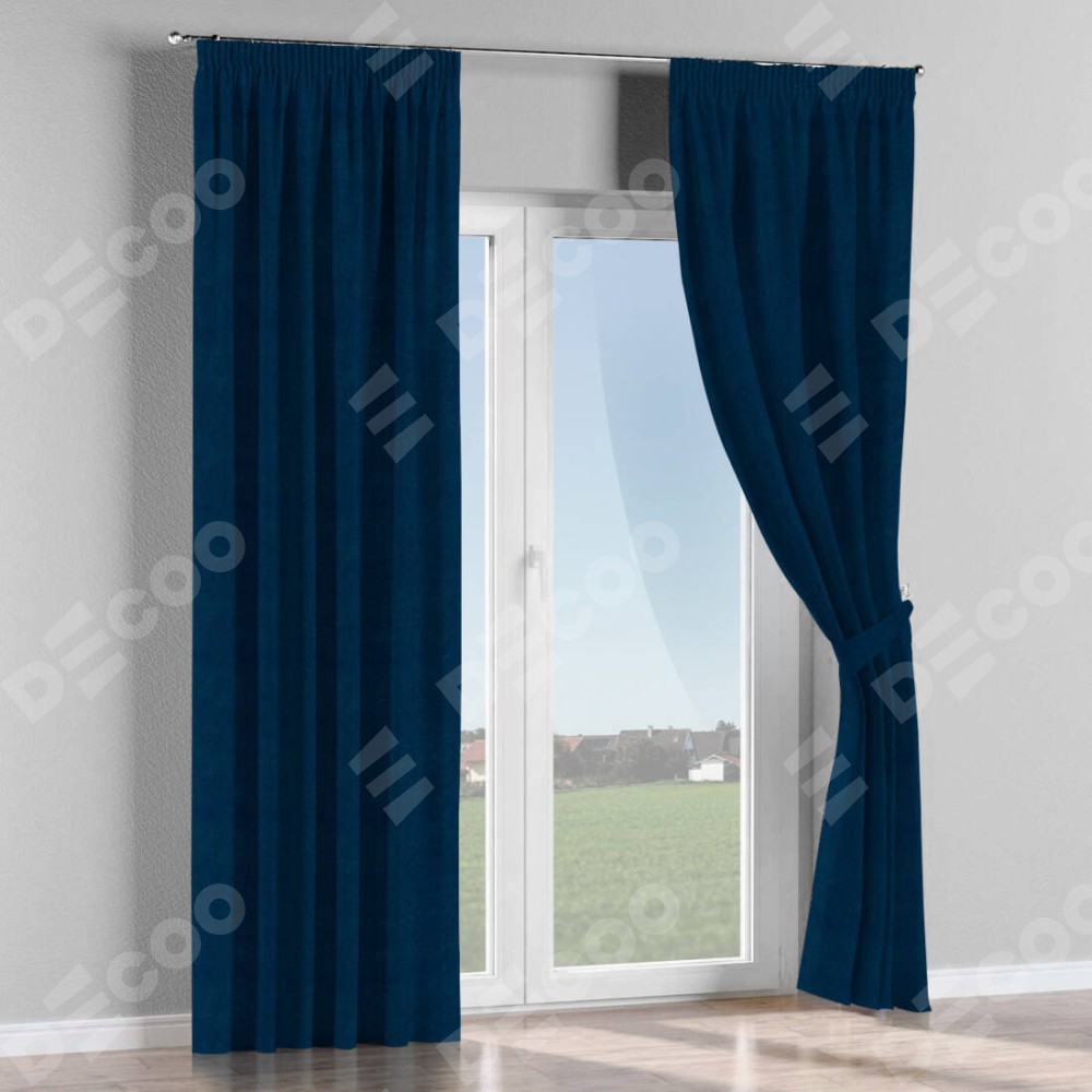 Комплект прямых штор, от производителя «Cortin», пошиты из ткани вельвет тёмно-синий, артикул ткани 14152. С изнаночной стороны в верхней части штор пристрачивается шторная лента с декоративными складками «Карандаш». Для создания элегантных складок прямые шторы шьются по стандарту с коэффициентом 1:2 (на 100 см. ширины проёма 200 см. ширины ткани).