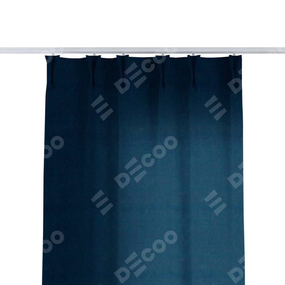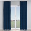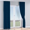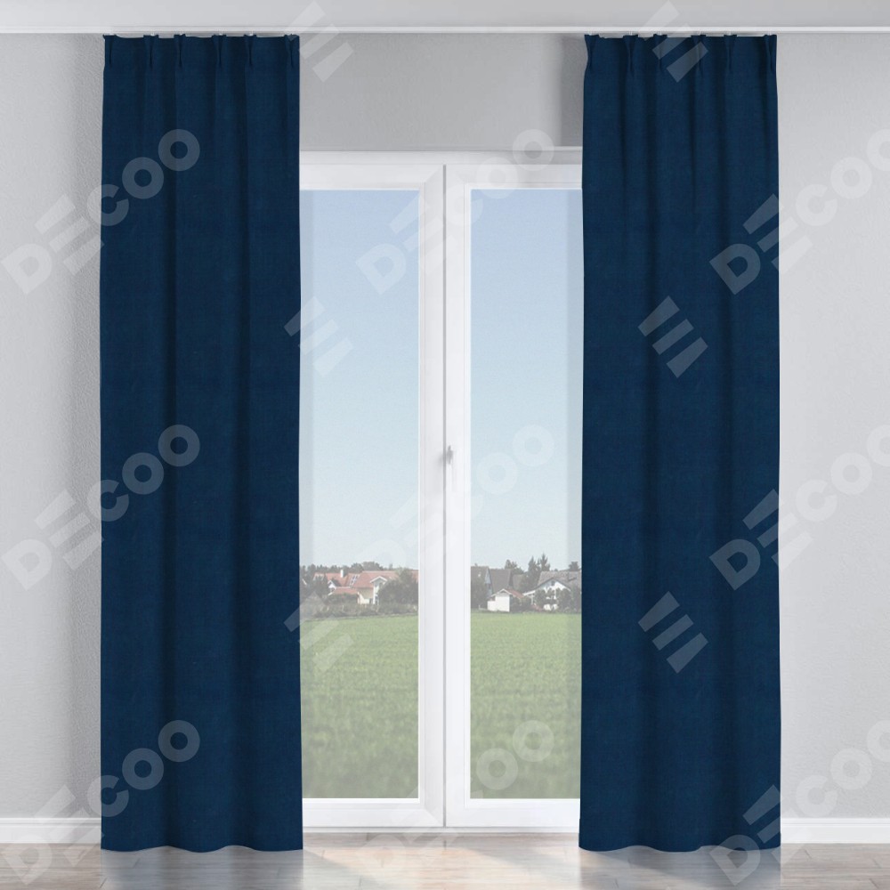 Комплект прямых штор, от производителя «Cortin», пошиты из ткани вельвет тёмно-синий, артикул ткани 14152. С изнаночной стороны в верхней части штор пристрачивается шторная лента с декоративными складками «Кустик». Для создания элегантных складок прямые шторы шьются по стандарту с коэффициентом 1:2 (на 100 см. ширины проёма 200 см. ширины ткани).