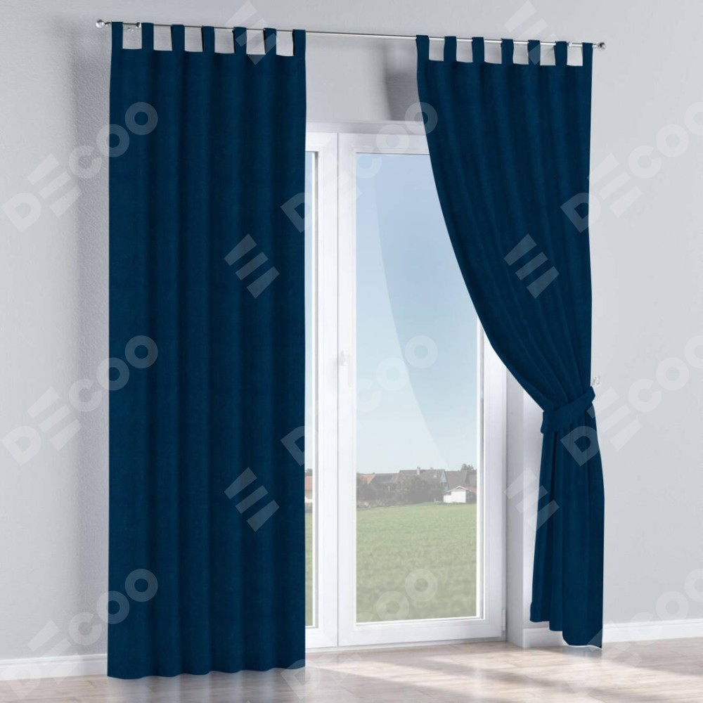 Комплект прямых штор, от производителя «Cortin», пошиты из ткани вельвет тёмно-синий, артикул ткани 14152. Данная модель пошита на петлях, комплектуется на выбор круглым карнизом и подходит для монтажа на стену или потолок. Прямые шторы на петлях шьются по стандарту с коэффициентом 1/2 (на 100 см. ширины проёма 200 см. ширины ткани), отличительным преимуществом данной модели является простой способ монтажа. Достаточно повесить ее на трубу и штора готова!