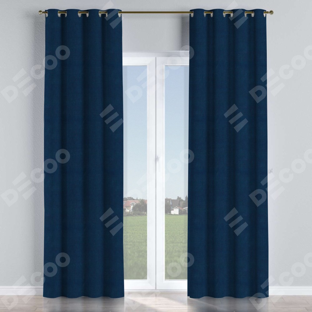 Комплект прямых штор, от производителя «Cortin», пошиты из ткани вельвет тёмно-синий, артикул ткани 14152. Данная модель пошита на люверсах, комплектуется на выбор круглым карнизом и подходит для монтажа на стену или потолок. Прямые шторы на люверсах шьются по стандарту с коэффициентом 1/2 (на 100 см. ширины проёма 200 см. ширины ткани), отличительным преимуществом данной модели является простой способ монтажа. Достаточно повесить ее на трубу и штора готова!