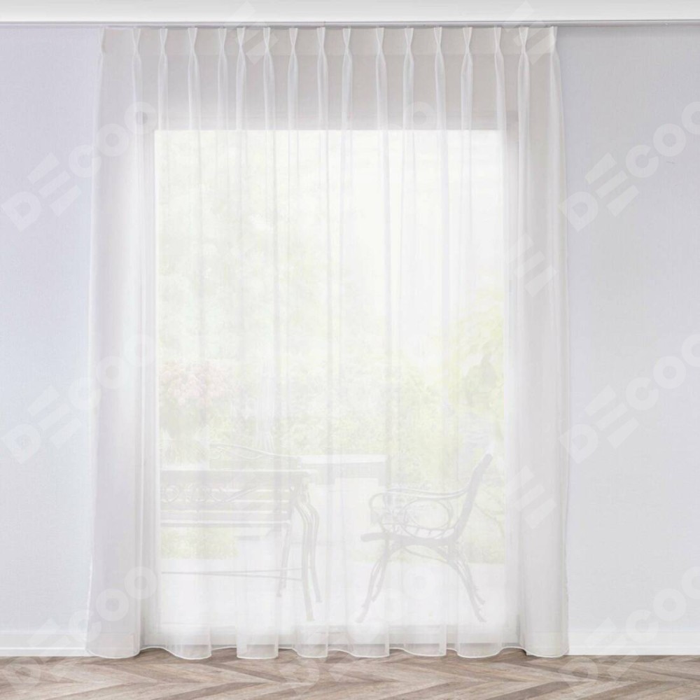 Комплект прямых штор, от производителя «Cortin», пошиты из ткани тюль шампань, артикул ткани V-02. С изнаночной стороны в верхней части штор пристрачивается шторная лента с декоративными складками «Кустик». Для создания элегантных складок прямые шторы шьются по стандарту с коэффициентом 1:2 (на 100 см. ширины проёма 200 см. ширины ткани).