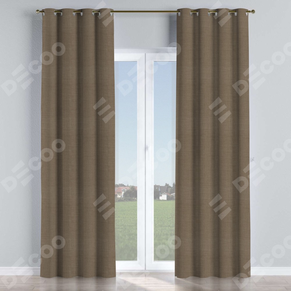 Комплект штор на люверсах лён мокко отлично подойдёт для интерьера зал, загородный дом и для дома.