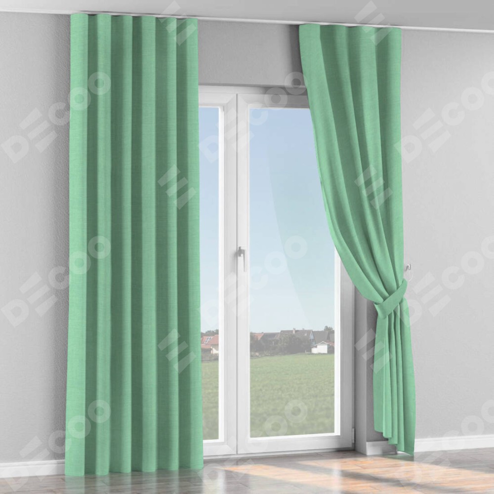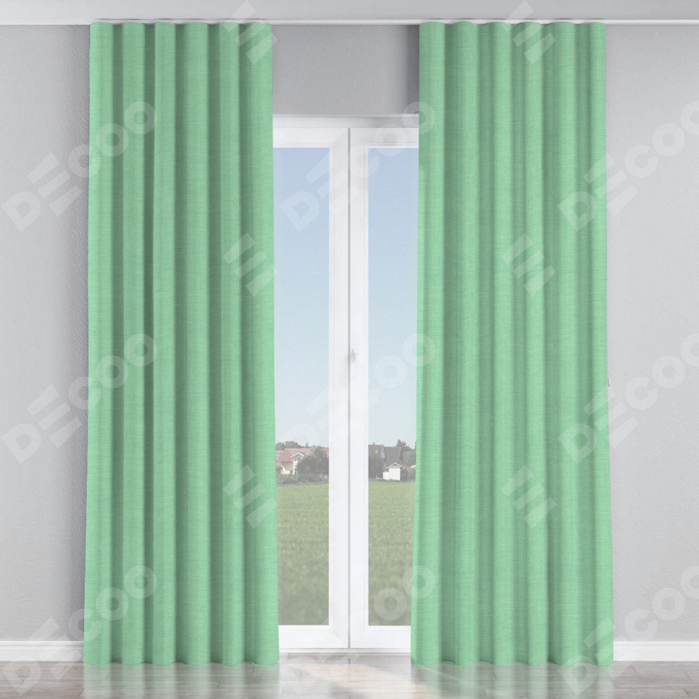 Комплект прямых штор, от производителя «Cortin», пошиты из ткани лён светло-бирюзовый, артикул ткани 74737. С изнаночной стороны в верхней части штор пристрачивается шторная лента с декоративными складками «Волна». Для создания элегантных складок прямые шторы шьются по стандарту с коэффициентом 1:2 (на 100 см. ширины проёма 200 см. ширины ткани).