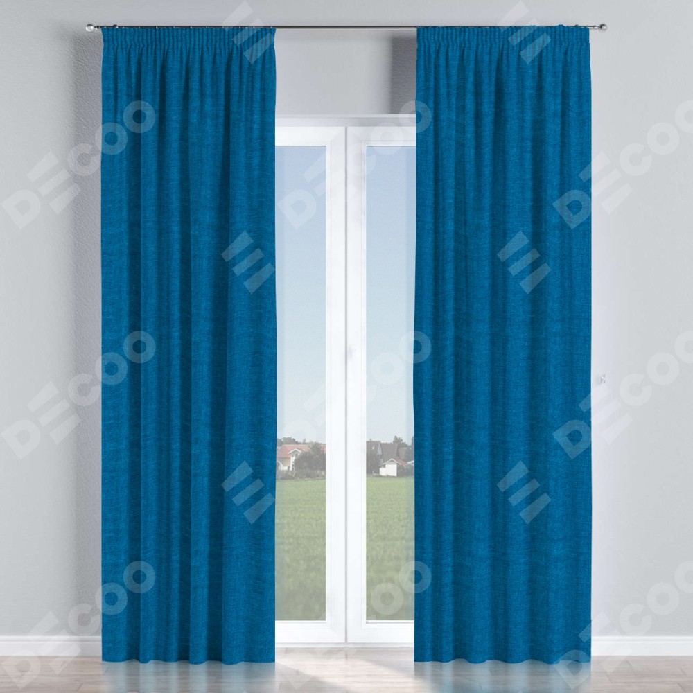 Комплект прямых штор, от производителя «Cortin», пошиты из ткани лён синий, артикул ткани 63742. С изнаночной стороны в верхней части штор пристрачивается шторная лента с декоративными складками «Карандаш». Для создания элегантных складок прямые шторы шьются по стандарту с коэффициентом 1:2 (на 100 см. ширины проёма 200 см. ширины ткани).