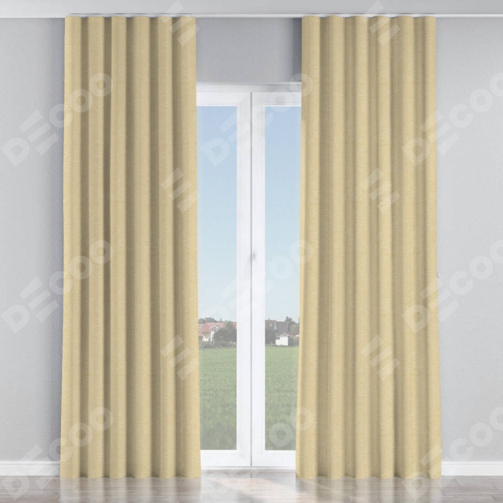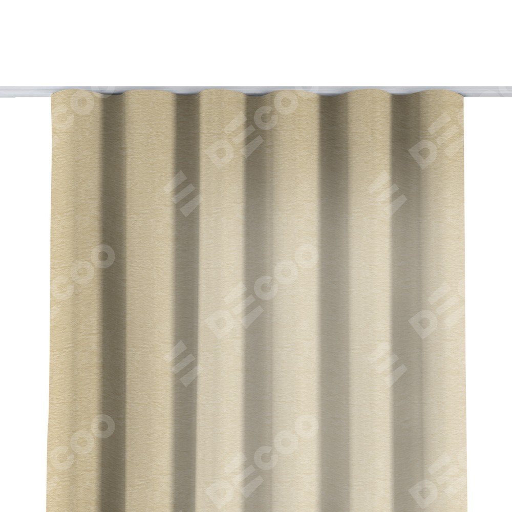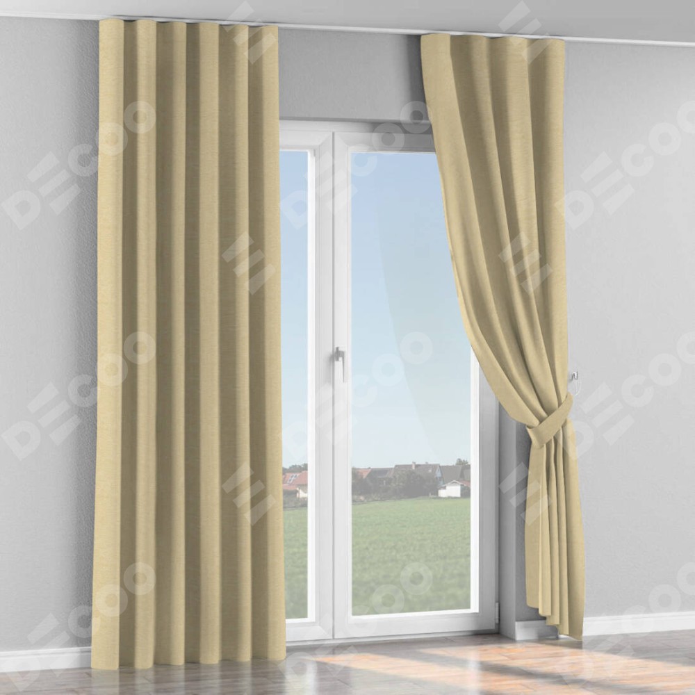 Комплект прямых штор, от производителя «Cortin», пошиты из ткани софт однотонный светло-бежевый, артикул ткани 54426. С изнаночной стороны в верхней части штор пристрачивается шторная лента с декоративными складками «Волна». Для создания элегантных складок прямые шторы шьются по стандарту с коэффициентом 1:2 (на 100 см. ширины проёма 200 см. ширины ткани).