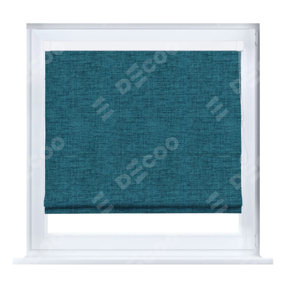 Римская штора производителя «Cortin», устанавливается на створку окна, пошита из ткани рогожка димаут синий, артикул 80422. Штора шьётся по индивидуальным размерам, для данного типа римской шторы возможная ширина от 35 до 150 см., высота до 250 см.