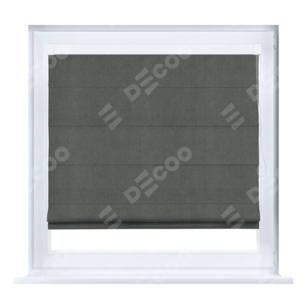 Римская штора производителя «Cortin», устанавливается на створку окна, пошита из ткани вельвет тёмно-серый, артикул 85542. Штора шьётся по индивидуальным размерам, для данного типа римской шторы возможная ширина от 35 до 150 см., высота до 250 см.