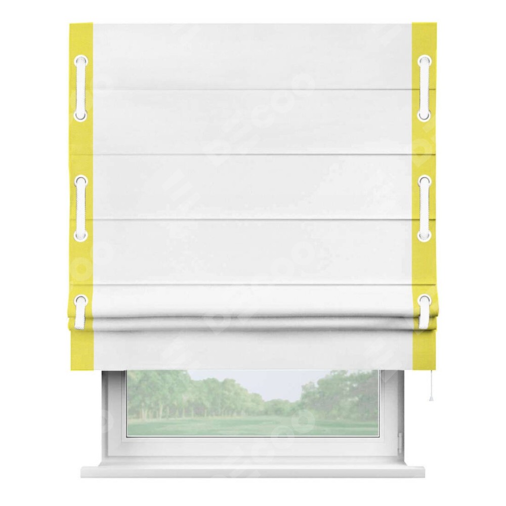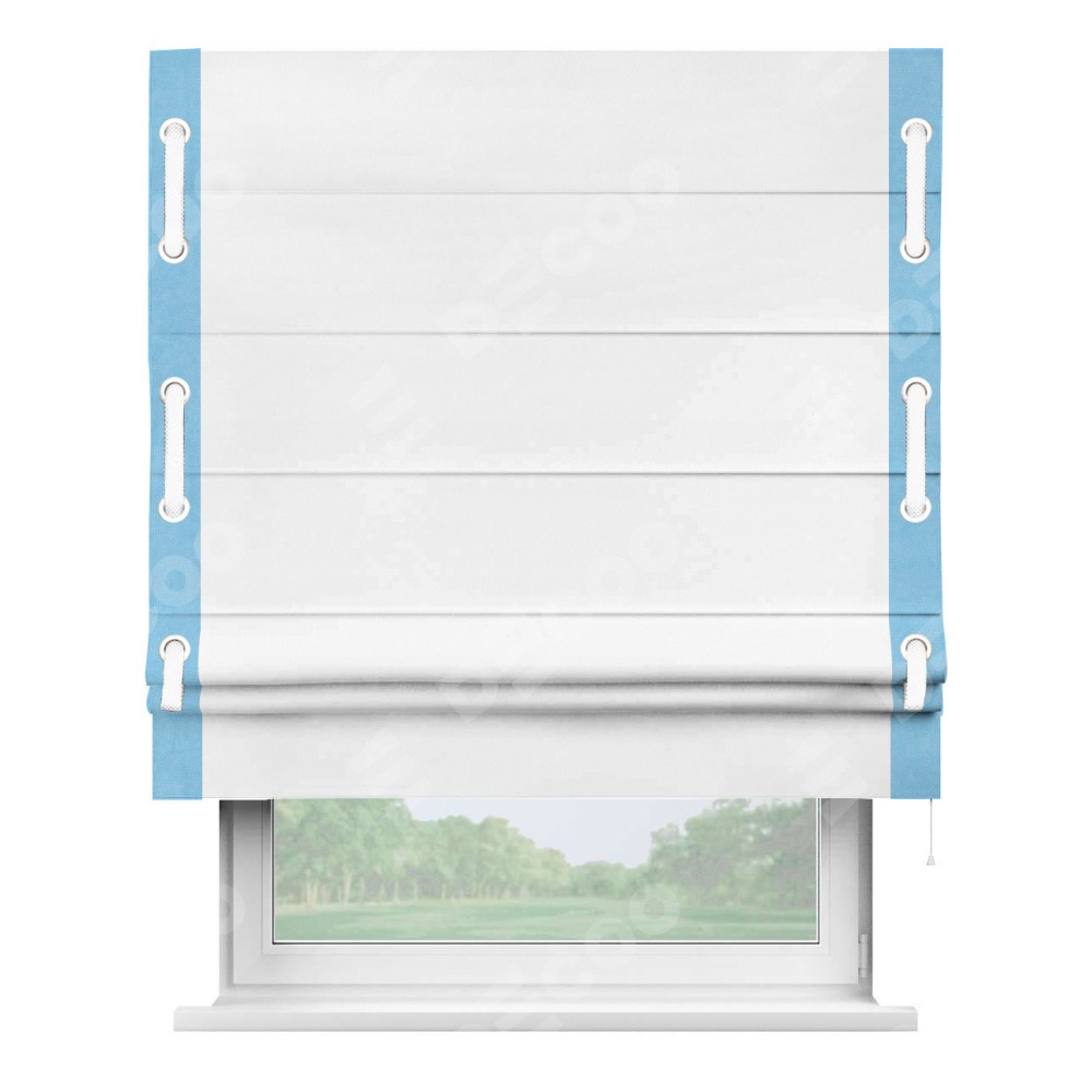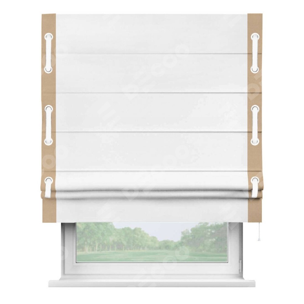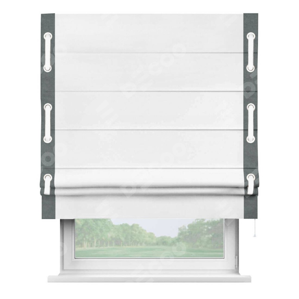 Римская штора «Кортин» с кантом Стрим Дуо (люверсы с пояском), для проема, ткань вельвет белый