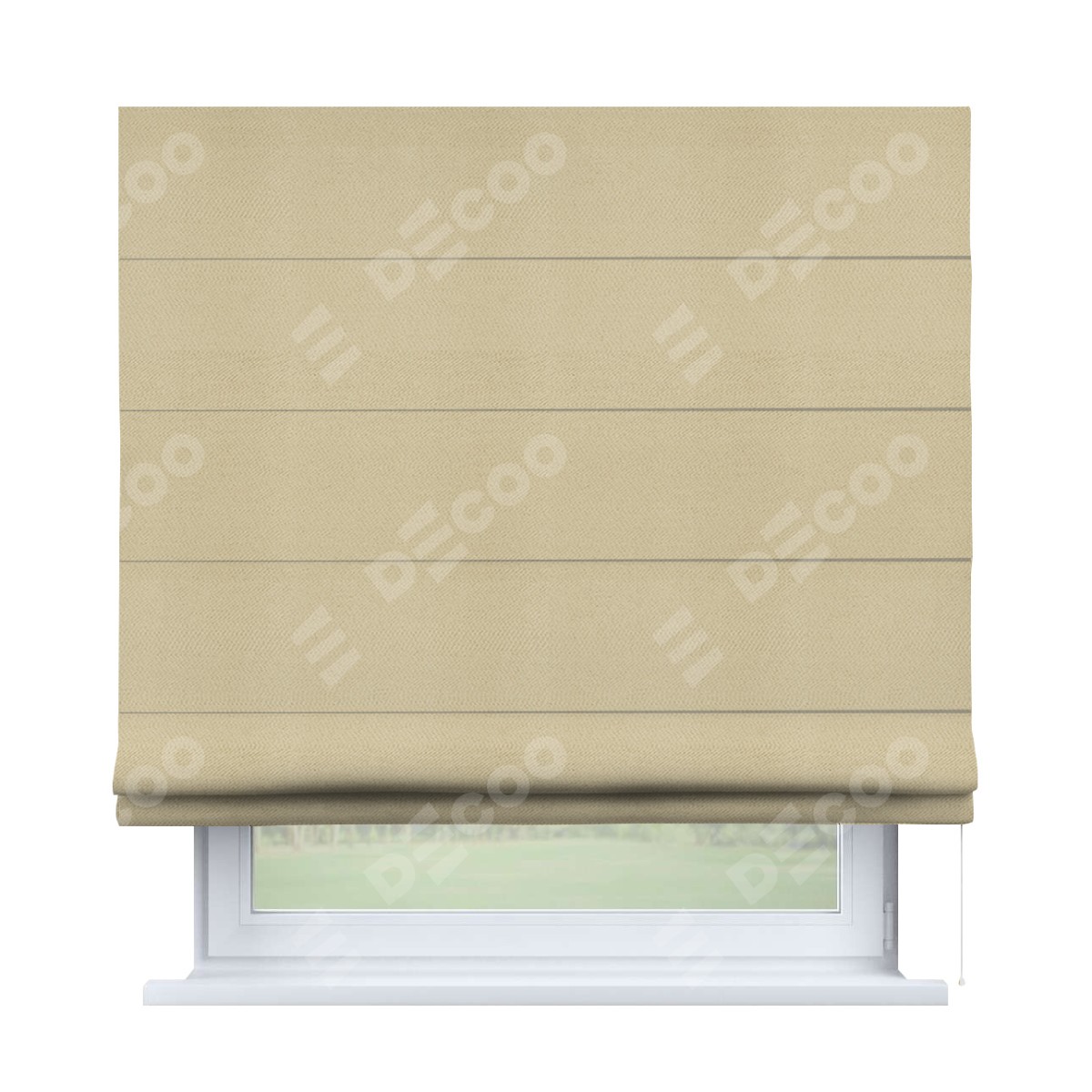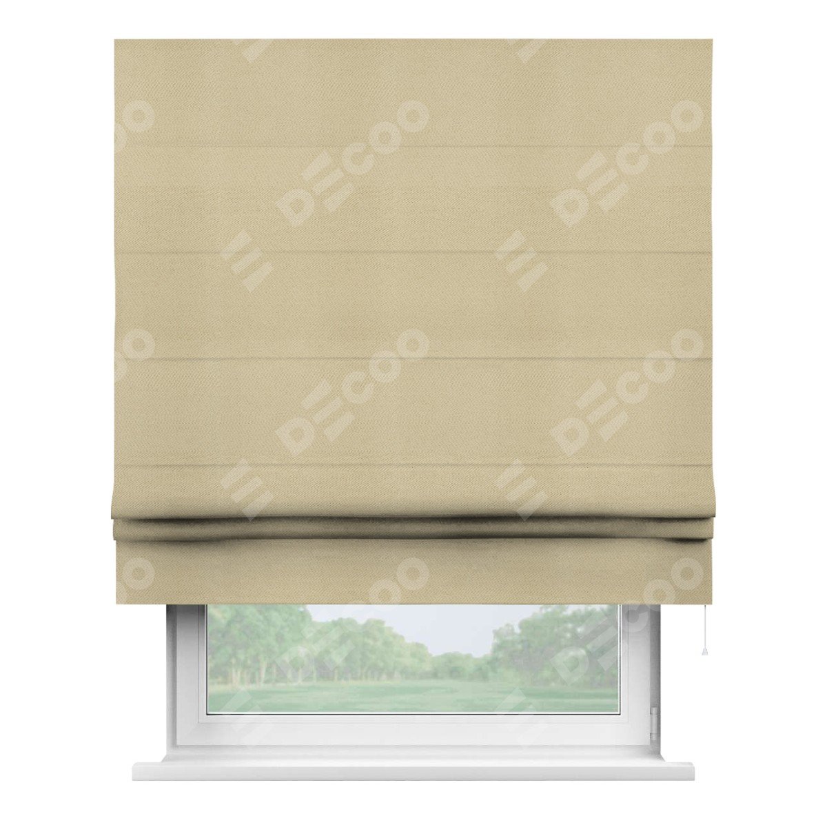 Римская штора производителя «Cortin», используется для проёма, пошита из ткани блэкаут однотонный милано латте, артикул ткани 05. Имеет универсальный механизм и подходит для монтажа: на потолок, на стену и в нишу.