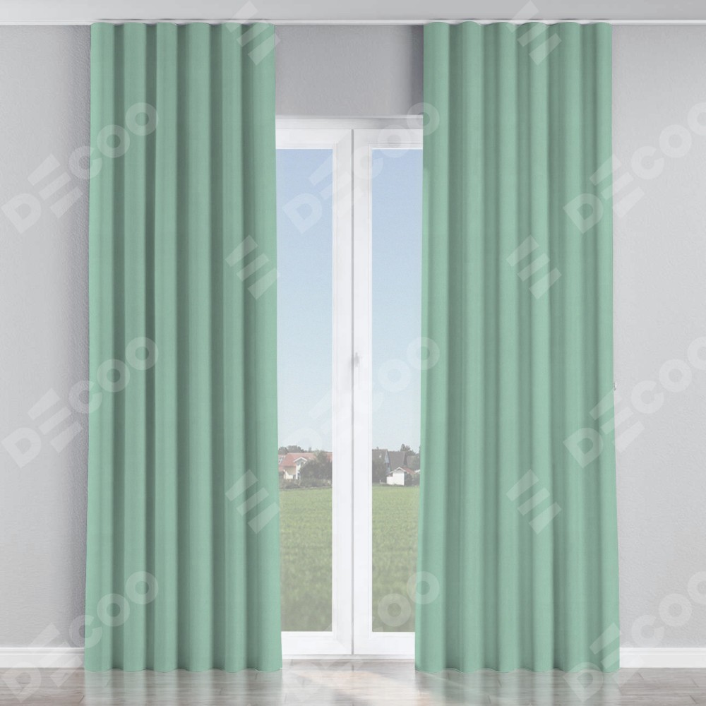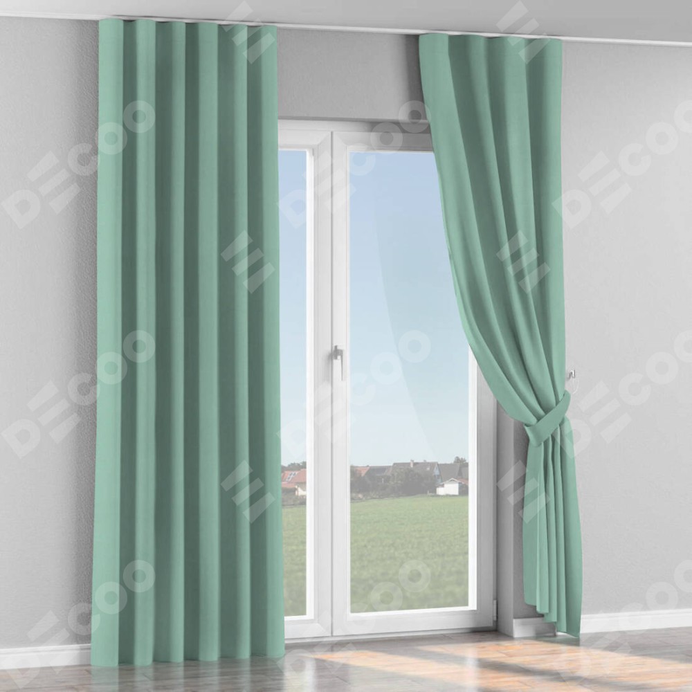 Комплект прямых штор, от производителя «Cortin», пошиты из ткани блэкаут однотонный ментоловый, артикул ткани 29584. С изнаночной стороны в верхней части штор пристрачивается шторная лента с декоративными складками «Волна». Для создания элегантных складок прямые шторы шьются по стандарту с коэффициентом 1:2 (на 100 см. ширины проёма 200 см. ширины ткани).