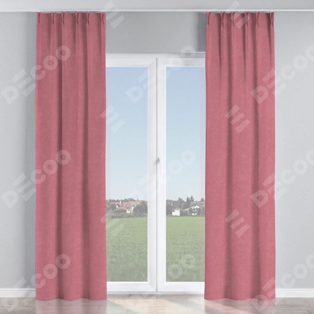 Комплект прямых штор, от производителя «Cortin», пошиты из ткани софт однотонный розовый, артикул ткани 42926. С изнаночной стороны в верхней части штор пристрачивается шторная лента с декоративными складками «Кустик». Для создания элегантных складок прямые шторы шьются по стандарту с коэффициентом 1:2 (на 100 см. ширины проёма 200 см. ширины ткани).
