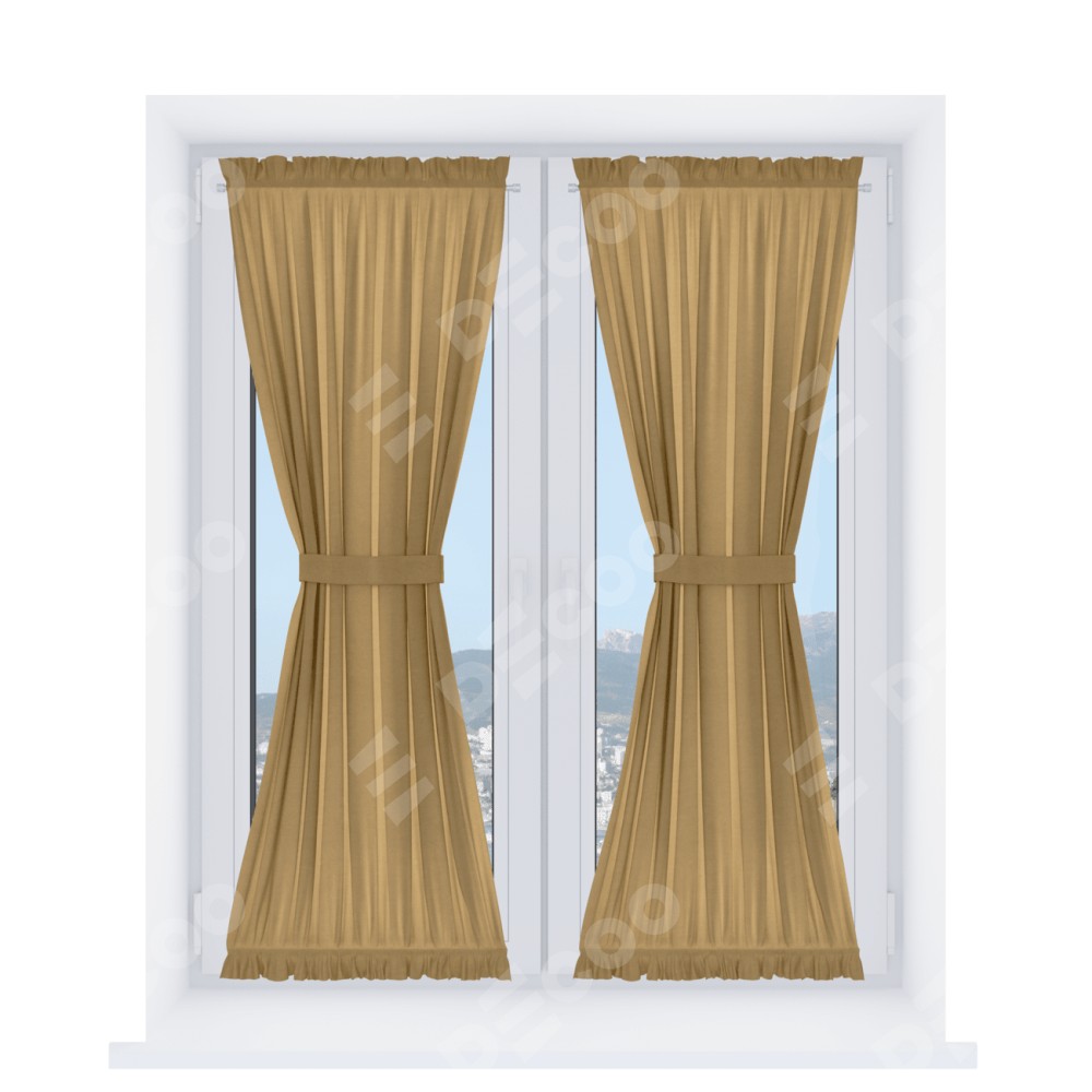 Штора «Песочные часы» производителя «Cortin», используется для створок окон и дверей, пошита из ткани вельвет горчица, артикул ткани 17760.