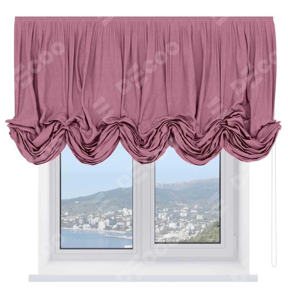 Австрийская штора производителя «Cortin», используется для проёма, пошита из ткани софт однотонный розовый, артикул ткани 42926. Имеет универсальный механизм и подходит для монтажа: на потолок и на стену.